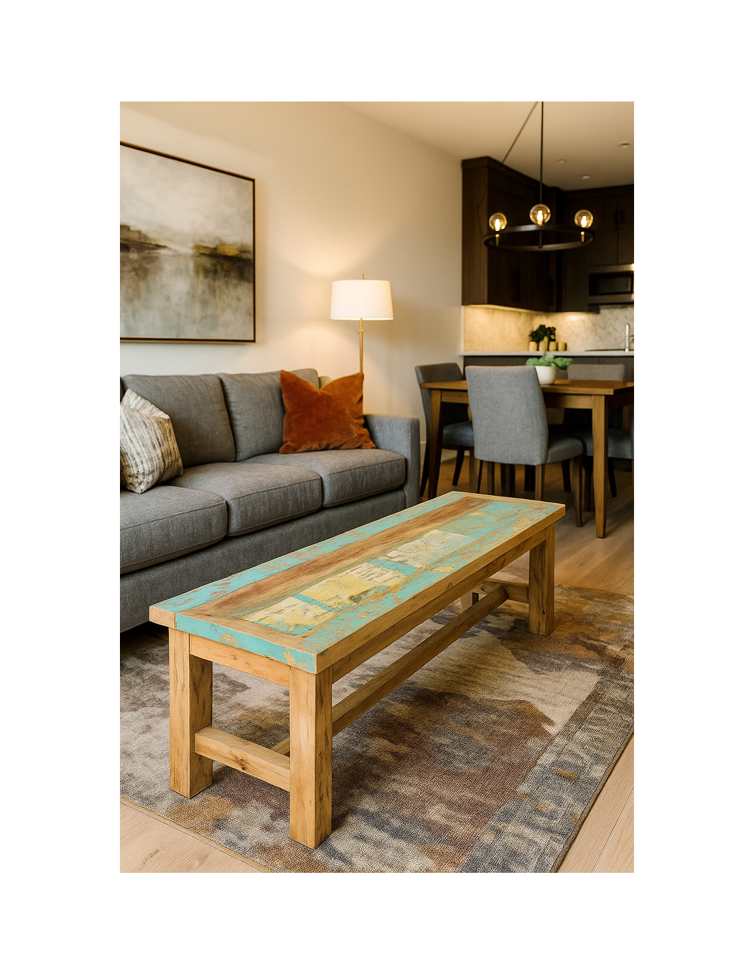 Panca in legno massello riciclato 160x35x46h – Arredo artigianale fatto a mano in Indonesia