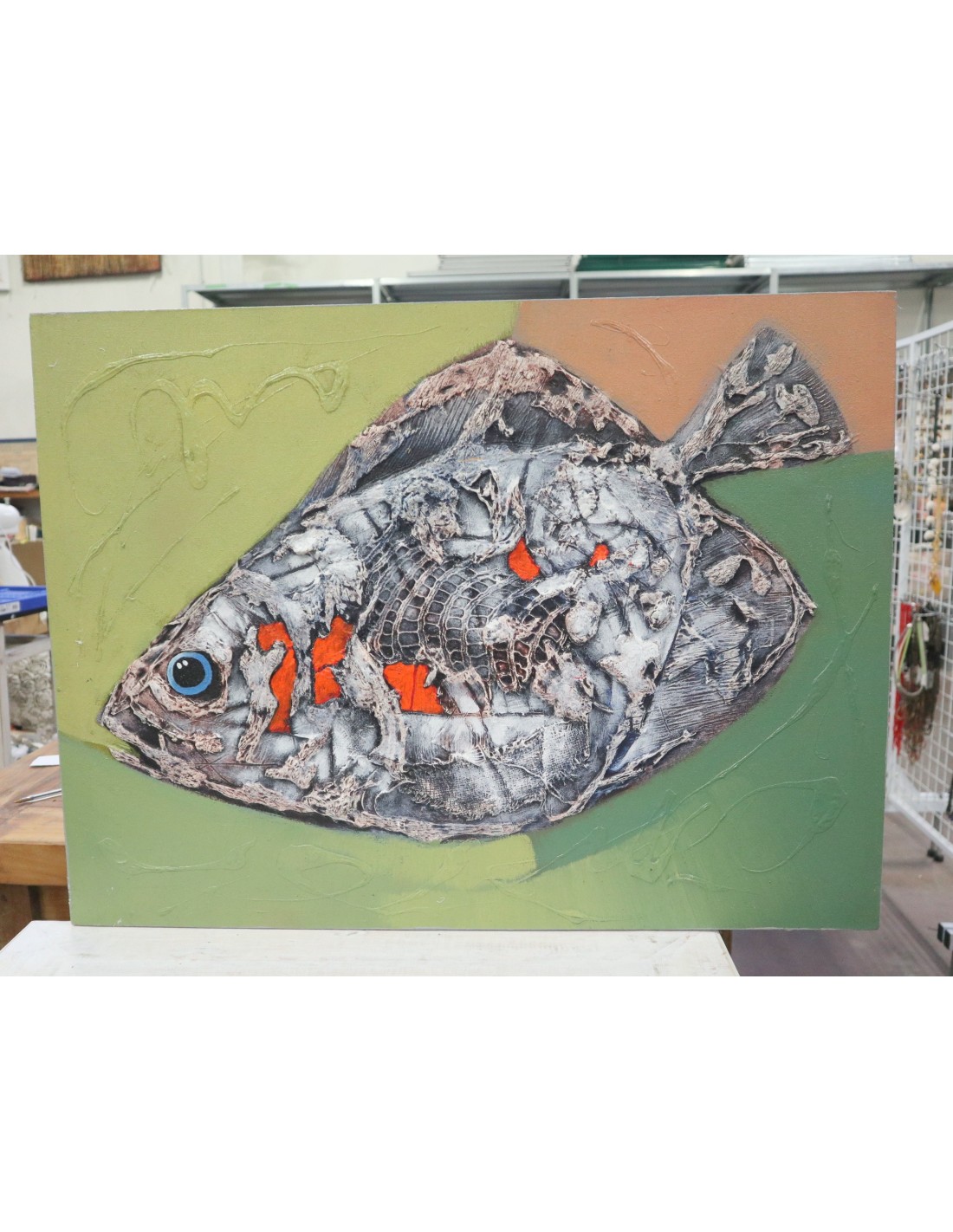 MarblechicQuesto quadro astratto con soggetto pesce è un’opera realizzata a mano in Indonesia su tela 80x60 cm con colori acrilici e rilievi materici che donano profondità e carattere all’immagine.