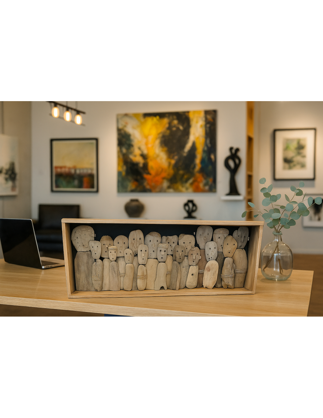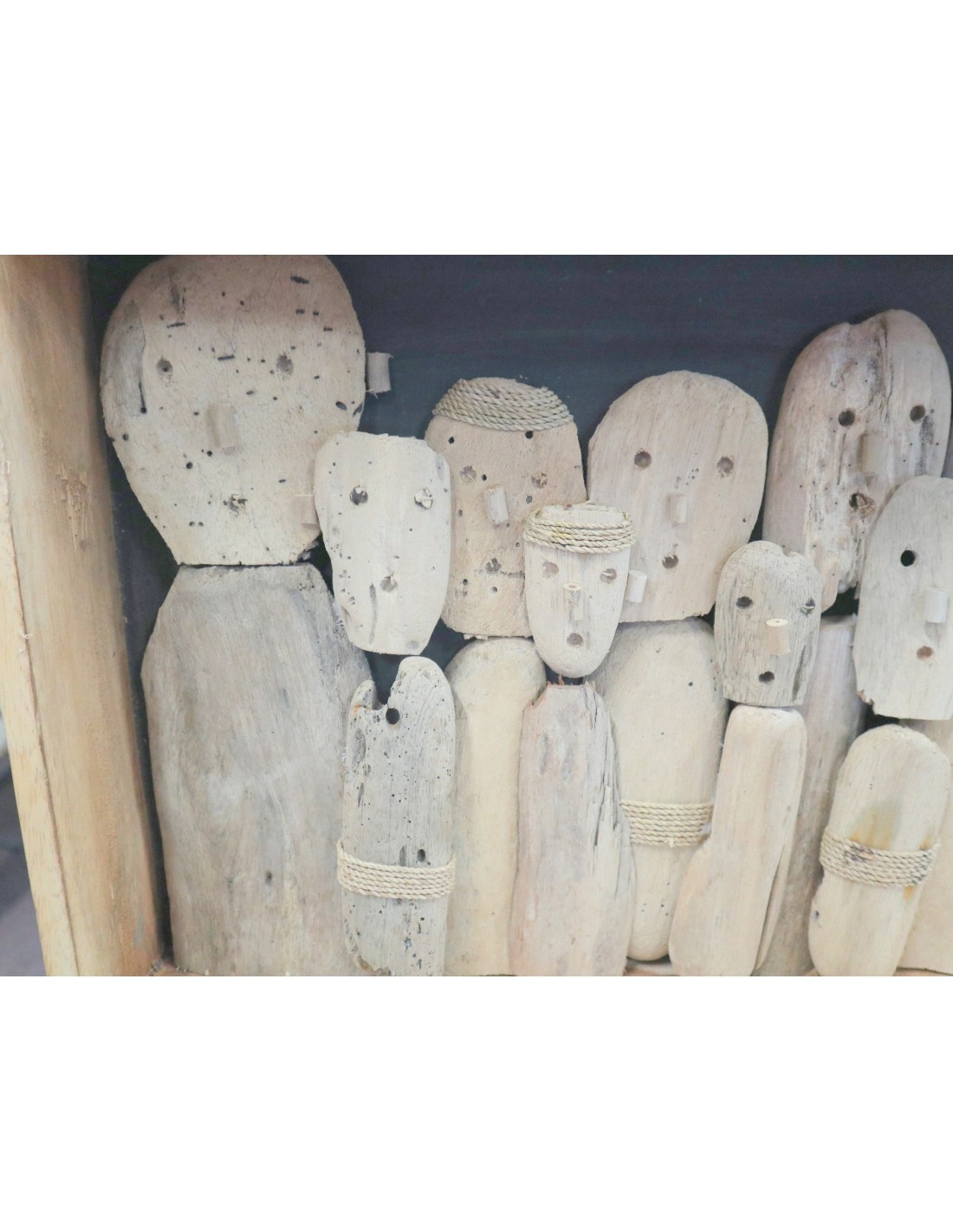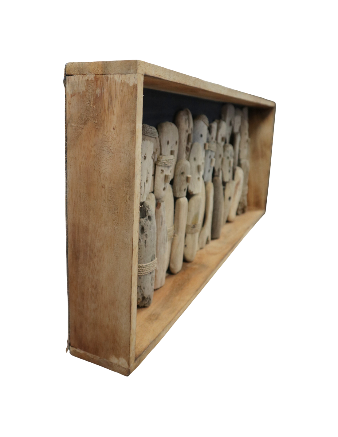 MarblechicQuesto quadro in legno artigianale (cm 100x50x10) rappresenta un gruppo di figure stilizzate intagliate e composte a mano, esaltando la bellezza del legno naturale.