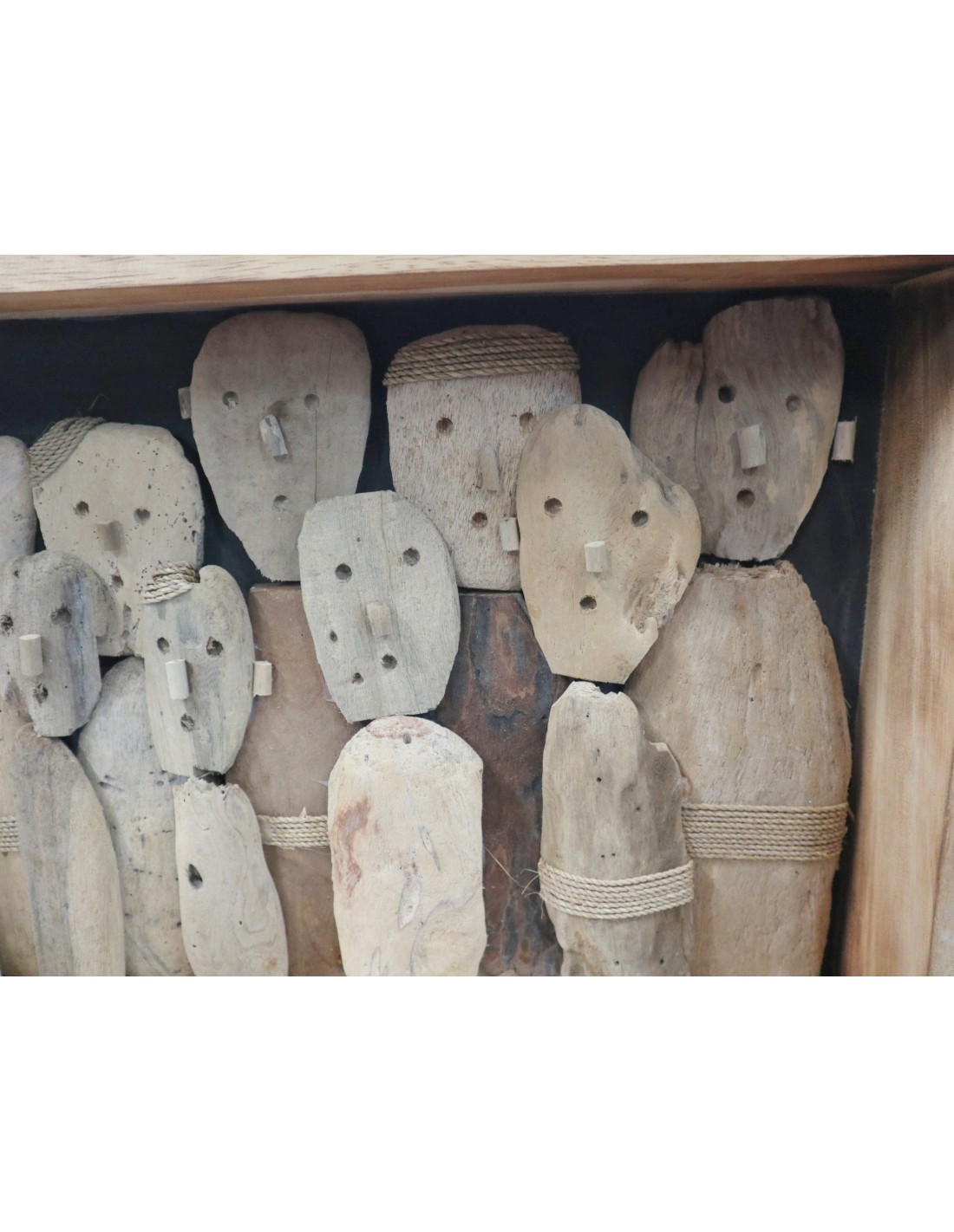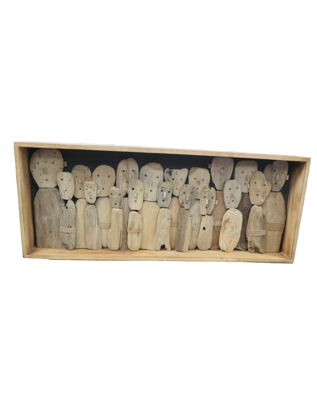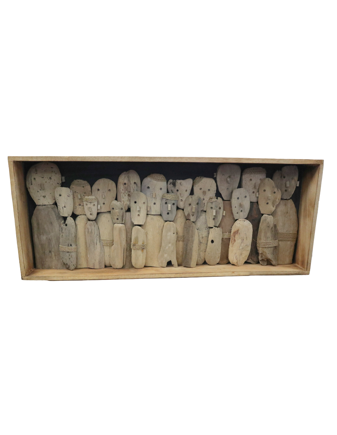 MarblechicQuesto quadro in legno artigianale (cm 100x50x10) rappresenta un gruppo di figure stilizzate intagliate e composte a mano, esaltando la bellezza del legno naturale.