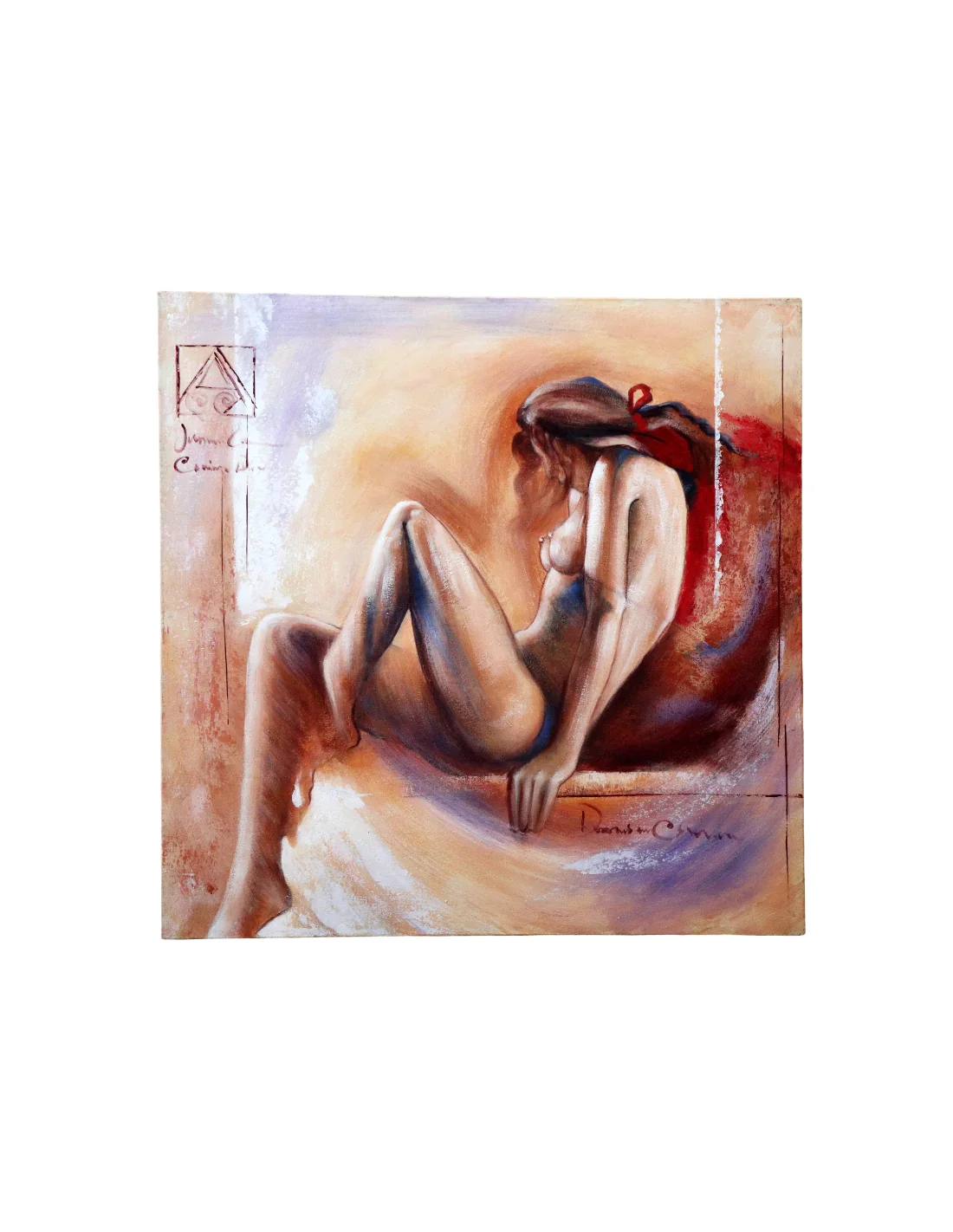 Il soggetto rappresenta un nudo artistico raffinato, interpretato con tonalità calde e avvolgenti che rendono l’opera perfetta per ambienti moderni, living contemporanei o camere eleganti.