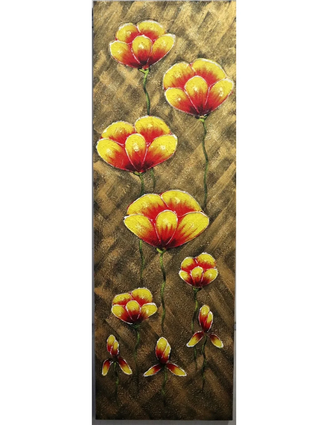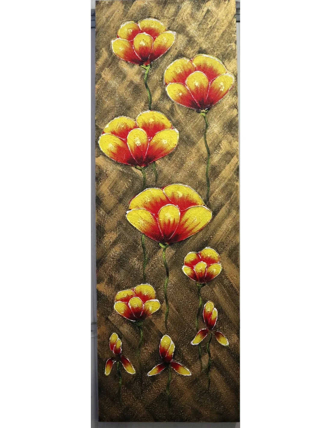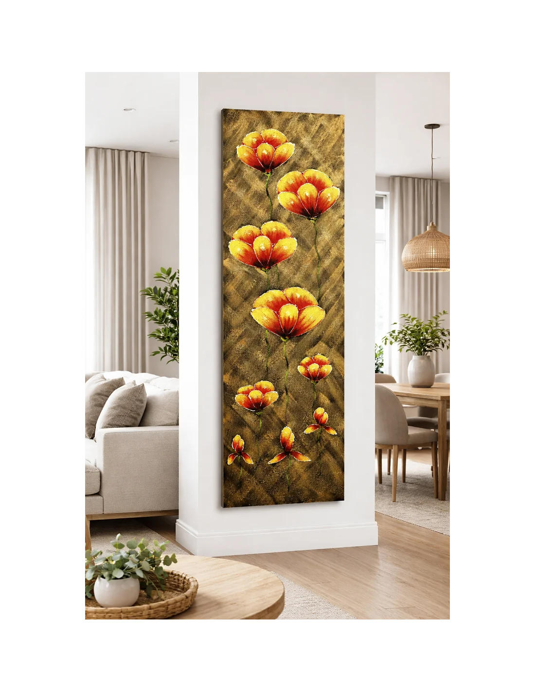 Quadro Floreale Verticale Moderno 50x150 cm – Dipinto a Mano su Tela con Fiori in Rilievo