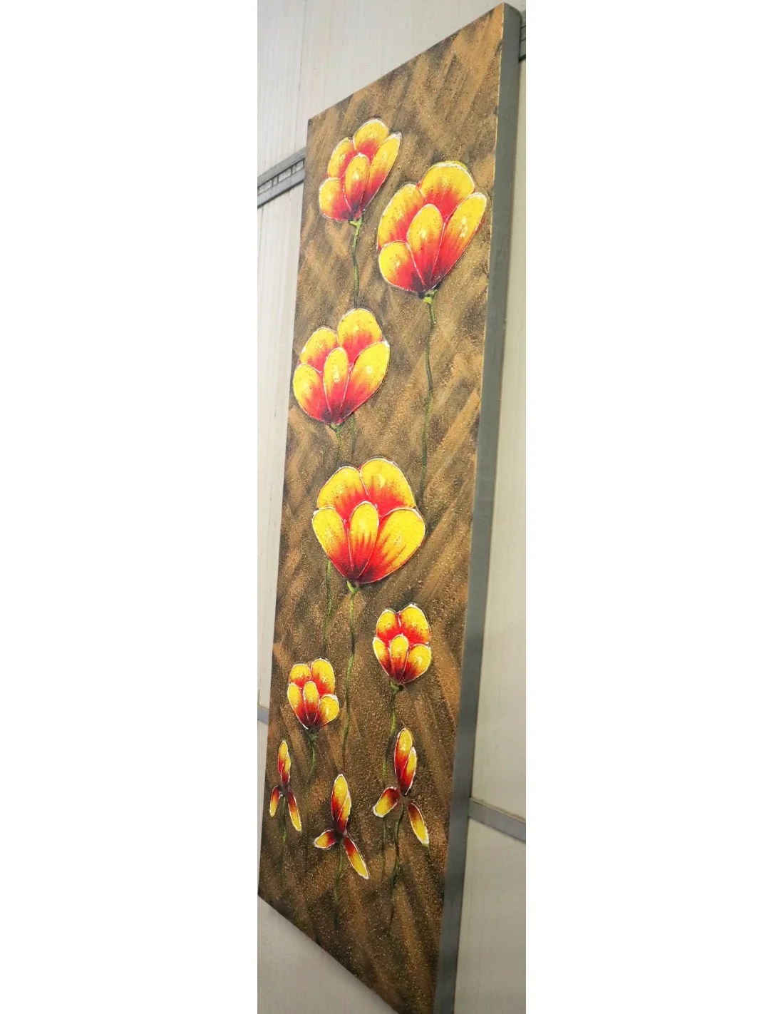 Porta nella tua casa un'opera artistica elegante e originale con questo quadro floreale verticale dipinto a mano, realizzato artigianalmente in Indonesia.