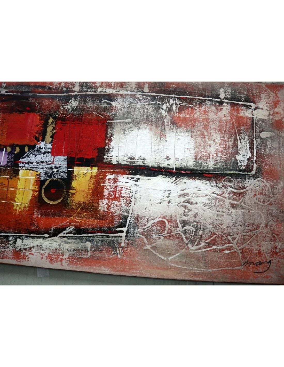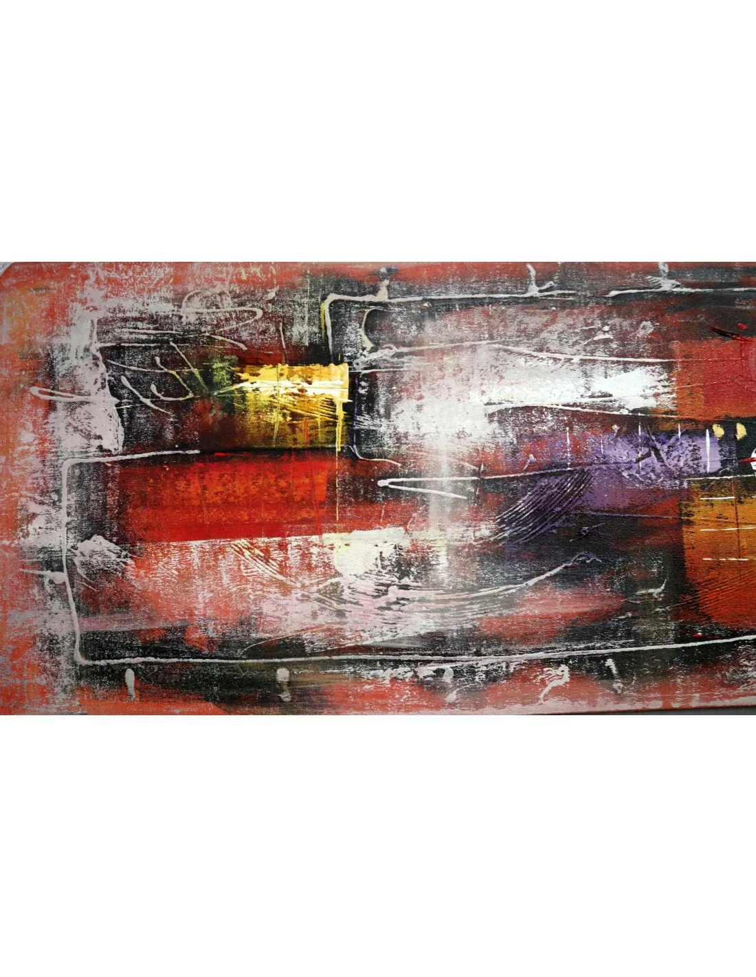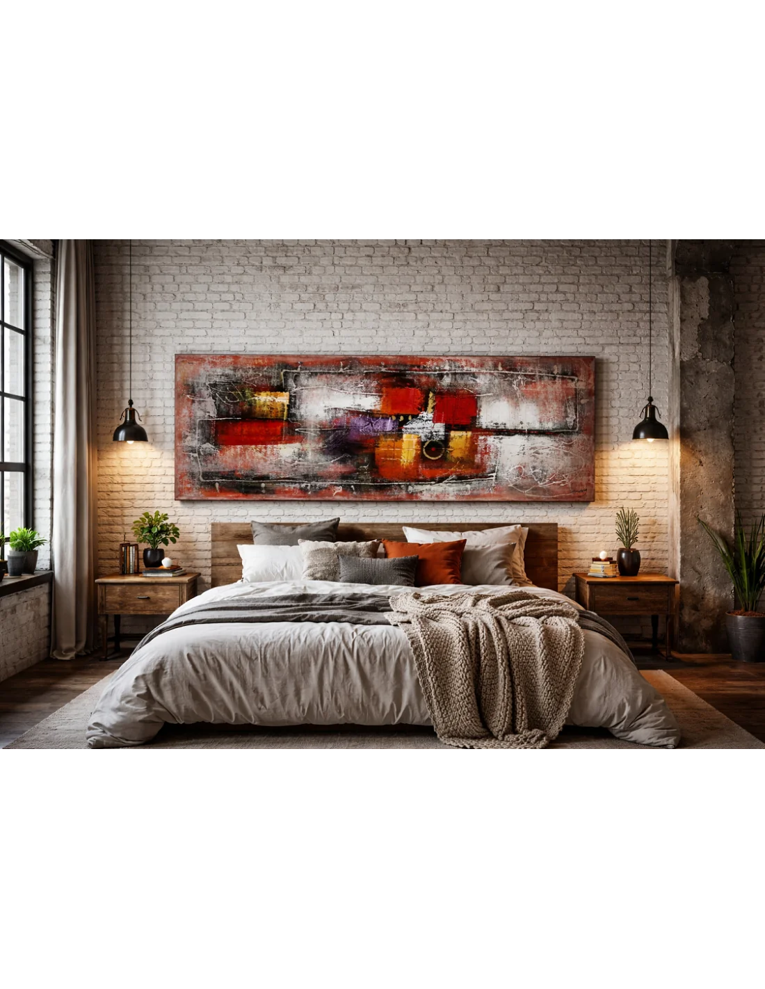 Questo quadro astratto moderno 60x180 cm, realizzato interamente a mano su tela con colori acrilici, è pensato per diventare il protagonista della stanza. Le sue tonalità intense di rosso, nero, bianco e oro creano un equilibrio perfetto tra energia e eleganza, ideale per ambienti contemporanei, loft industriali e camere da letto moderne.