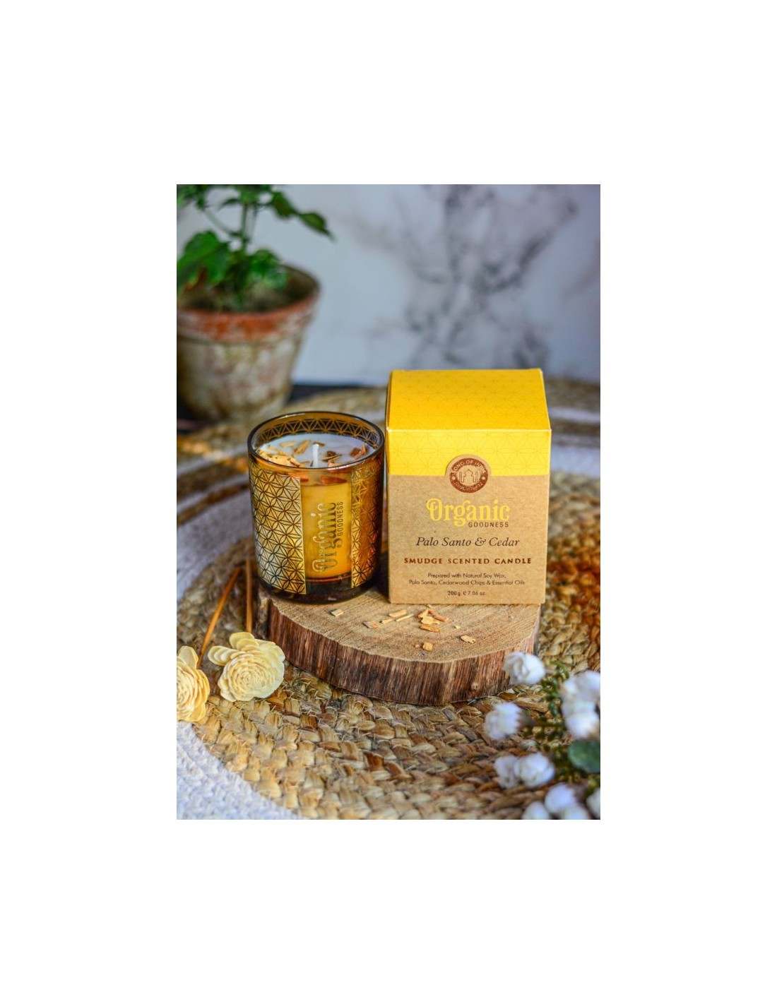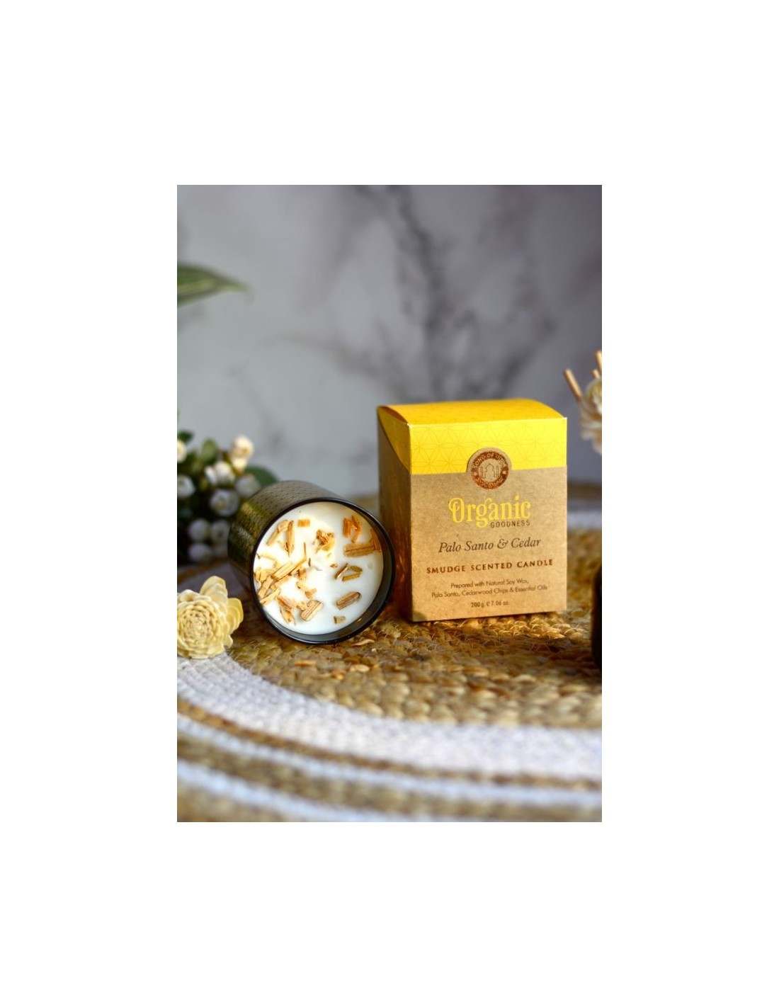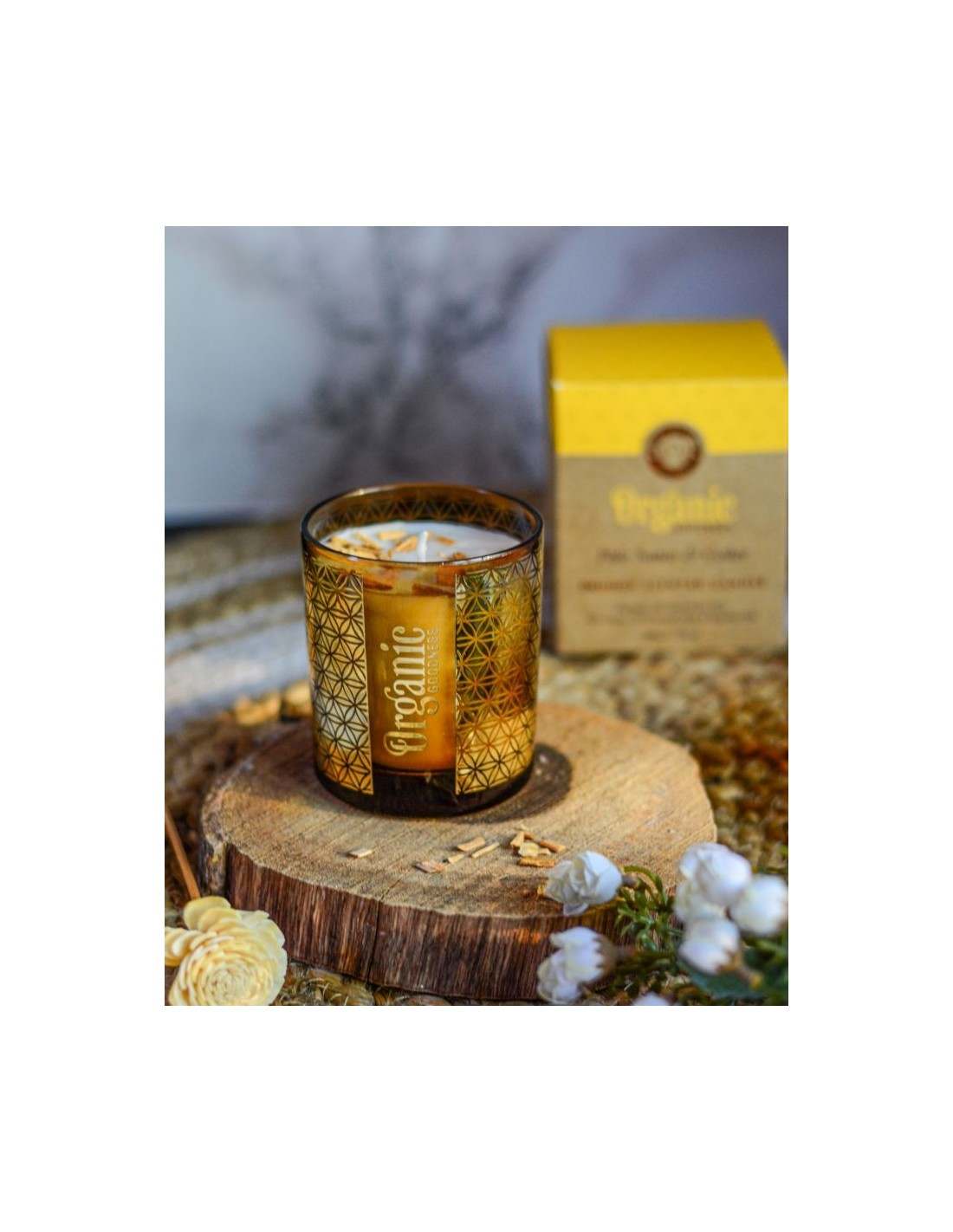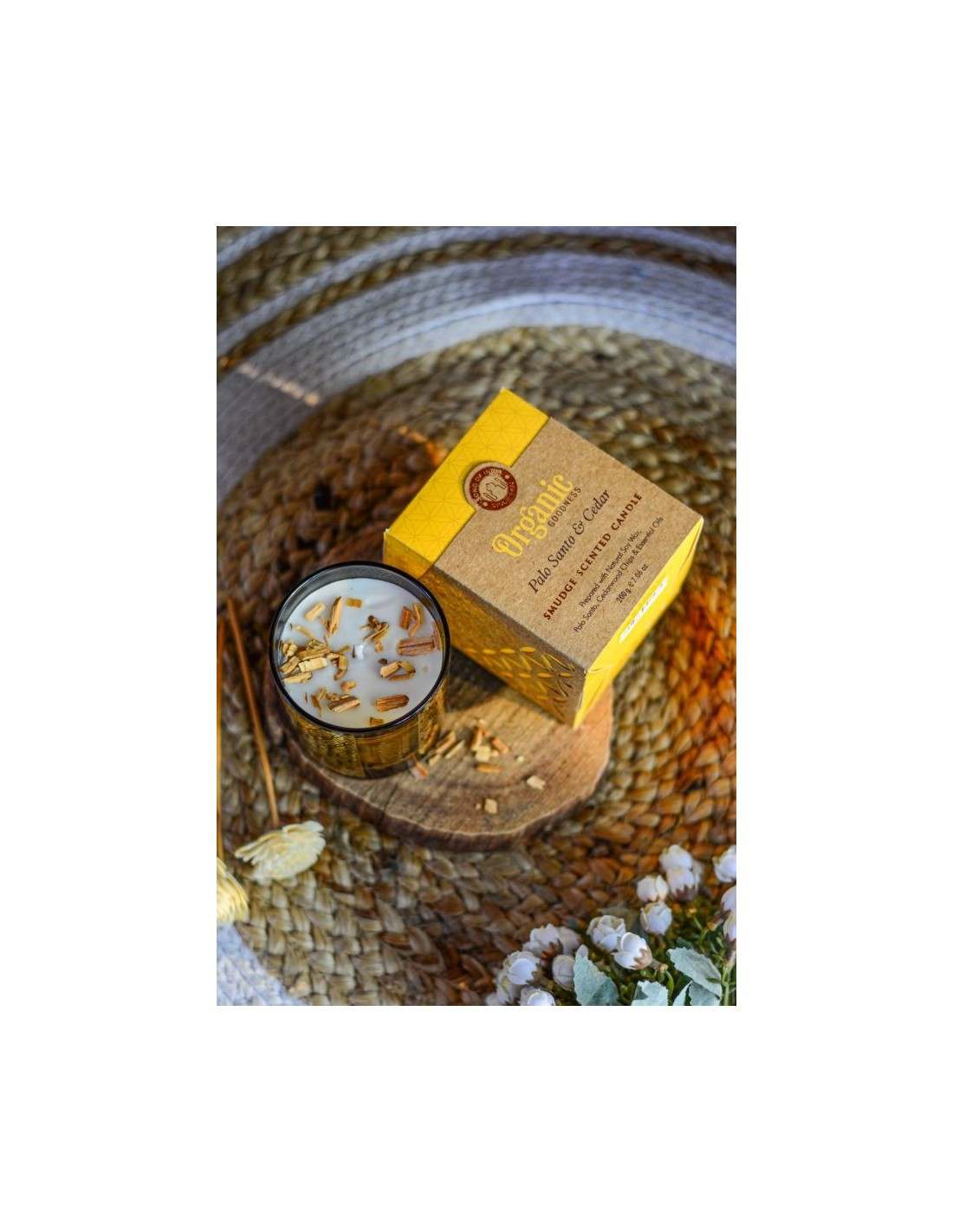 CANDELA ORGANIC IN CERA DI SOIA CON FRAMMENTI DI PALO SANTO & CEDRO GR 200