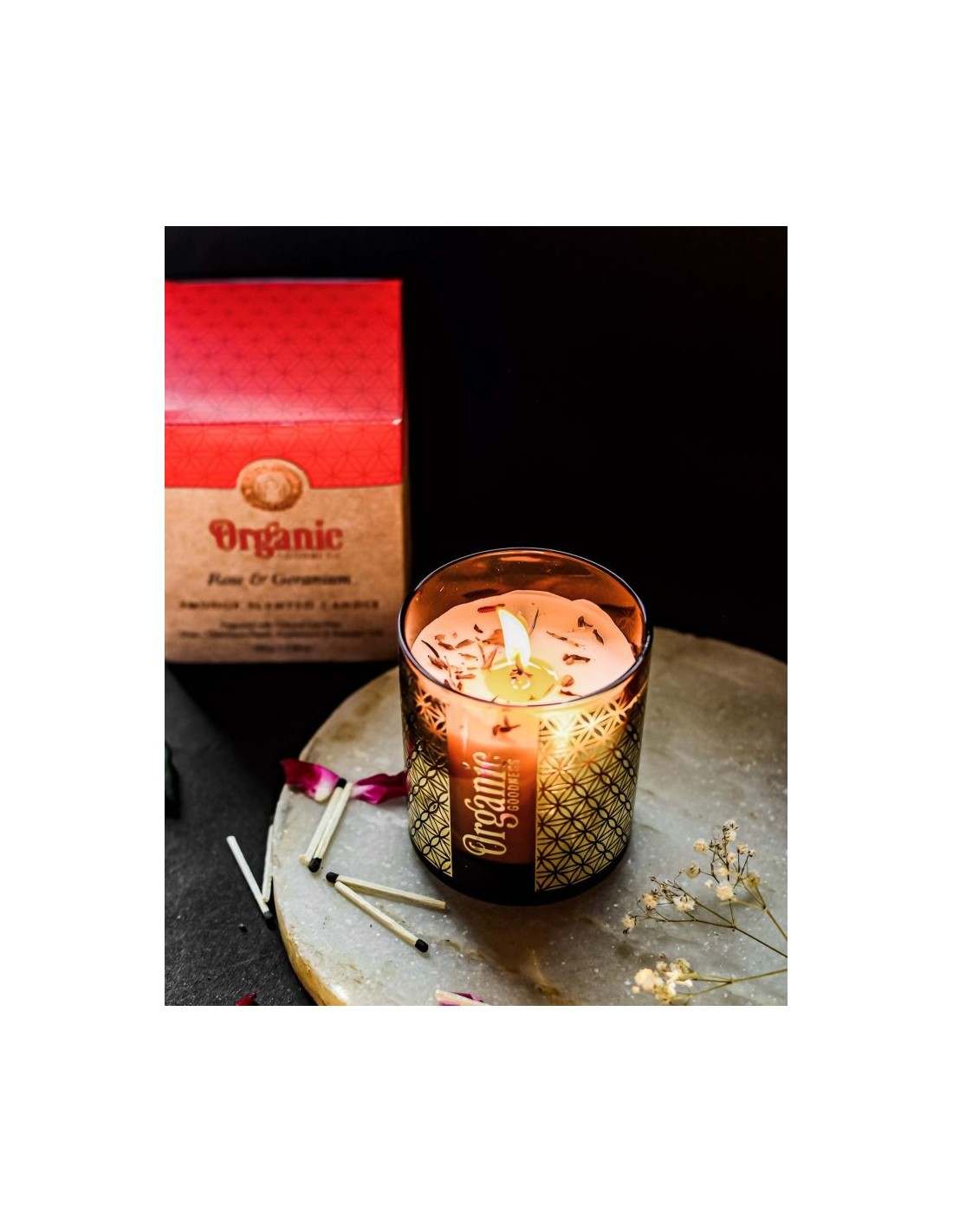 CANDELA ORGANIC IN CERA DI SOIA CON PETALI DI ROSA & GERANIO GR 200