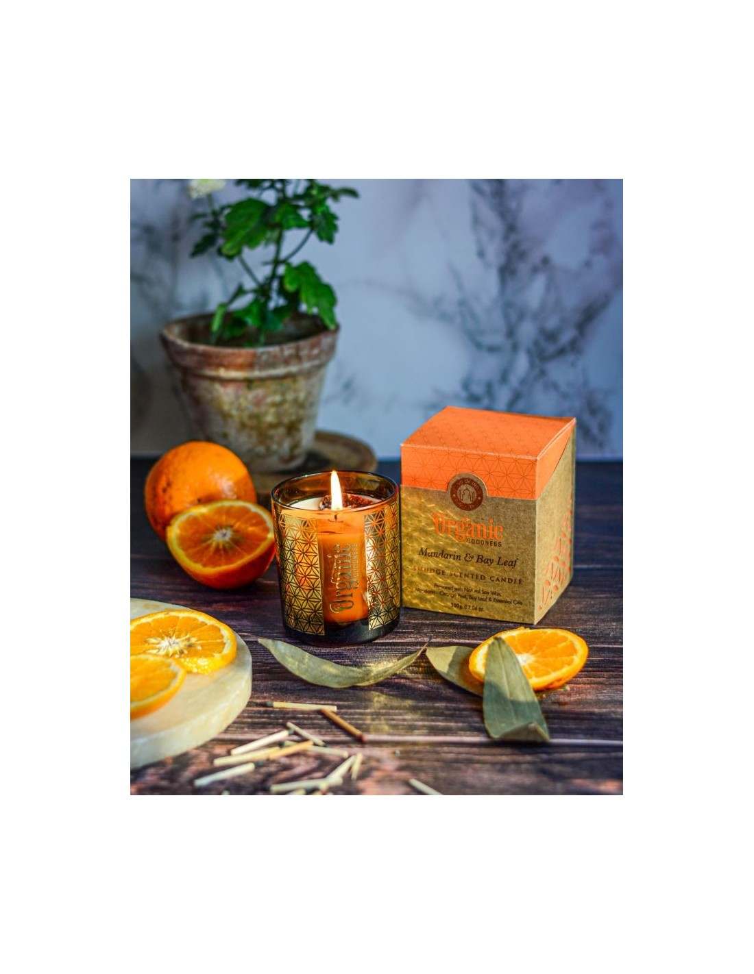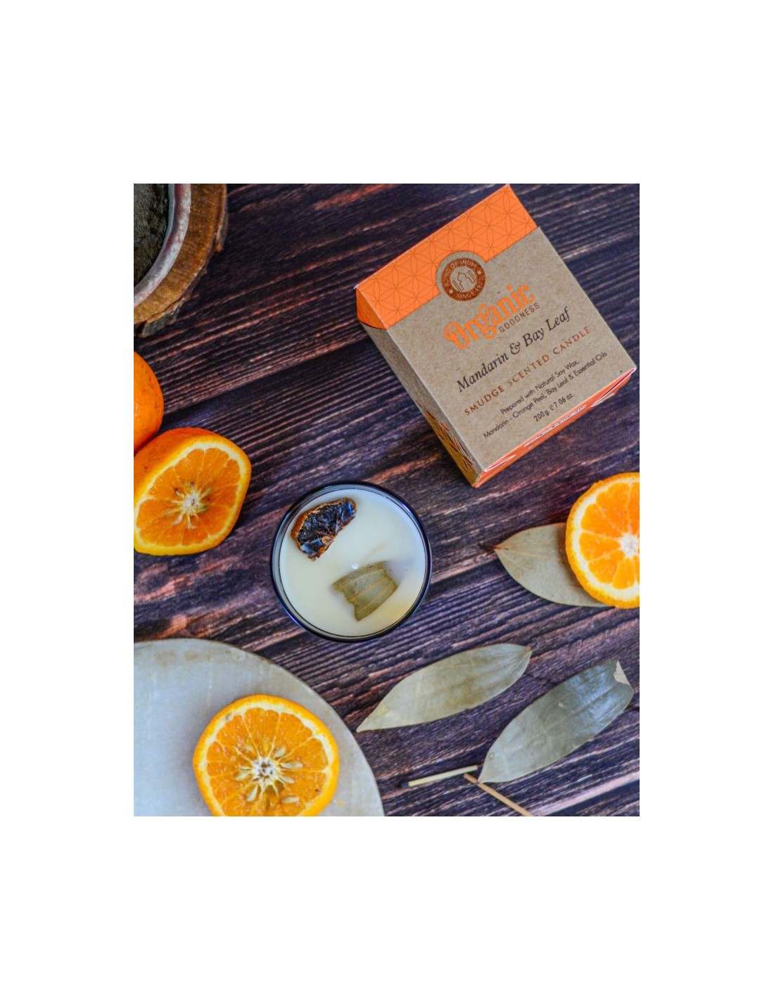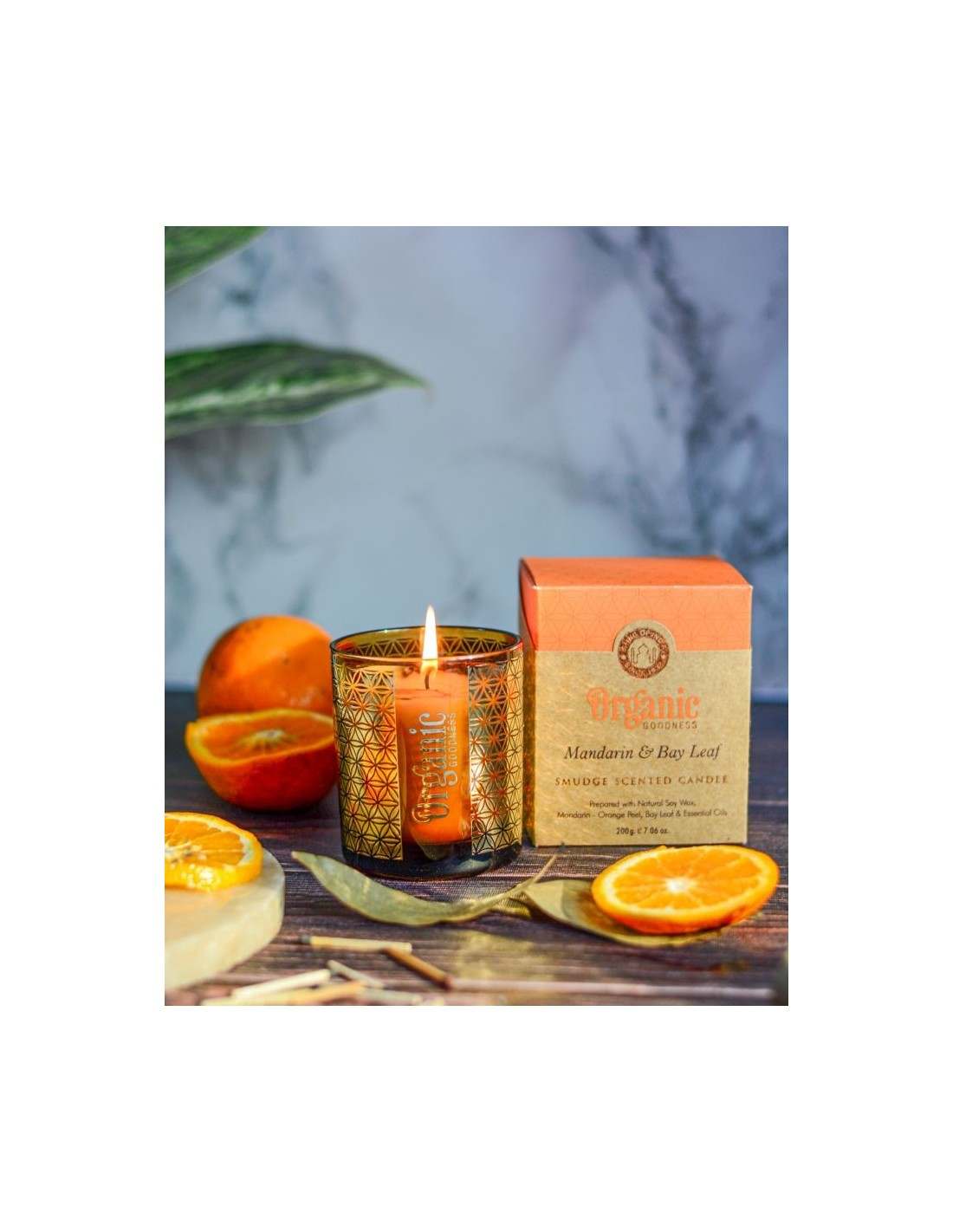 CANDELA ORGANIC IN CERA DI SOIA CON frammenti di Mandarino ed Allor GR 200
