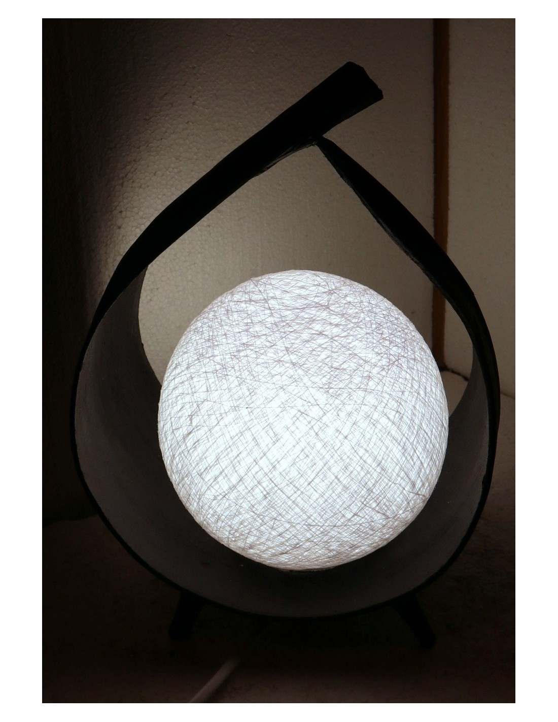 Marblechicbellissima lampada da tavola in resina realizzata con una foglia di cocco piegata ed una sfera in cotone .