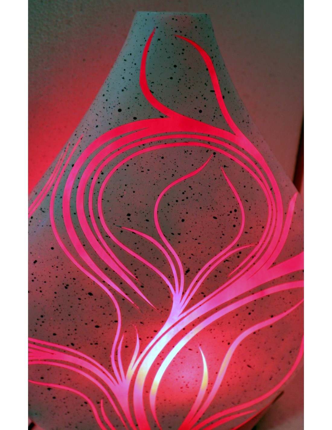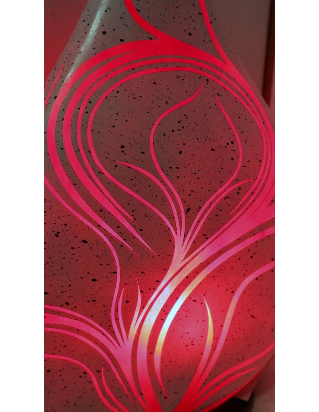 Design Bottiglia Creativo: La lampada presenta una forma di bottiglia stilizzata con un colore principale bianco grigio. All'interno, un disegno rosso raffigurante una pianta o una fiamma aggiunge un tocco di mistero e fascino.