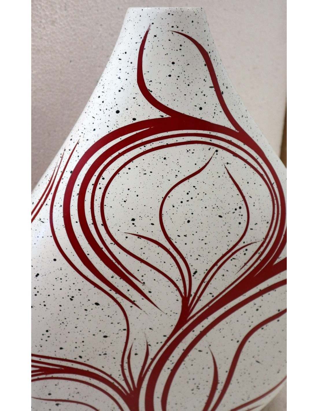 Lampada da tavolo abatjour in resina a bottiglia dipinta a mano bianca e rossa cm 35x10x44h