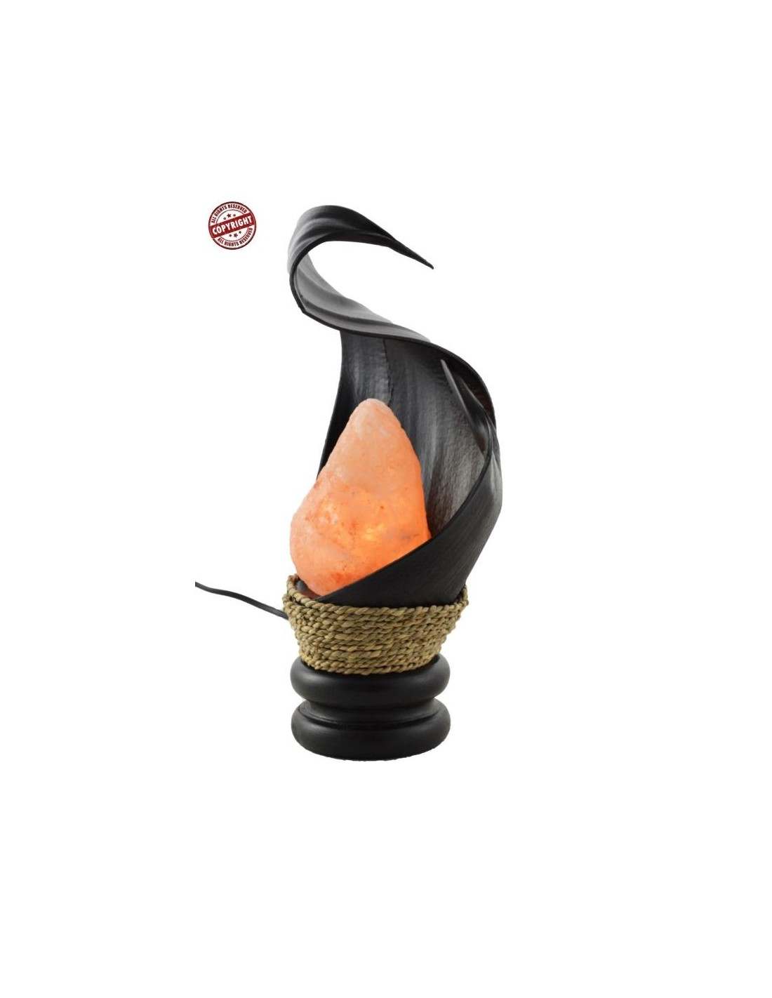 Lampada di Sale con Foglia di Cocco a Fiamma Nera – Stile e Benessere 🌿🔥