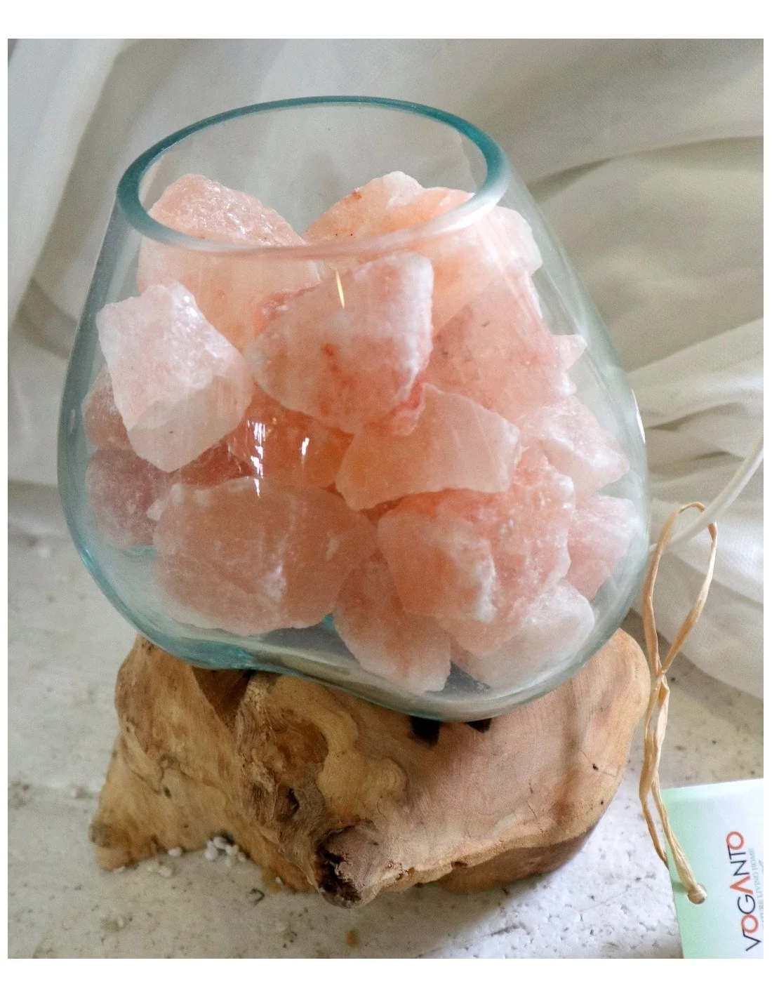 Lampada di Sale Rosa Himalayano in Vetro Soffiato su Radice – UNICA© Voganto | Design Naturale 11938