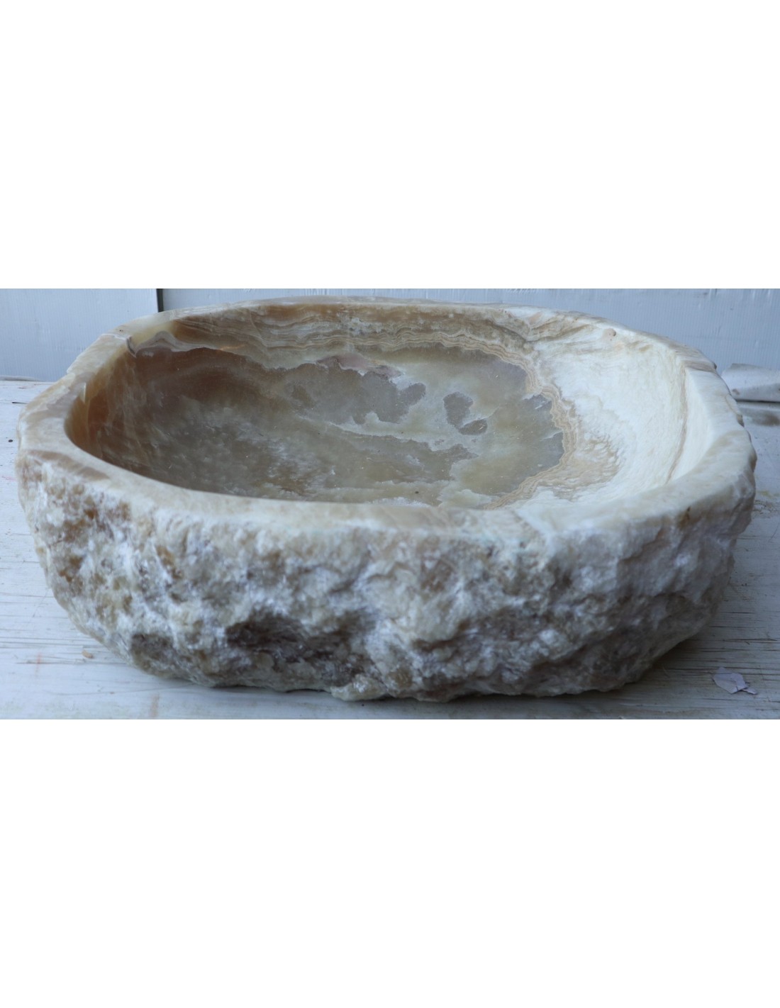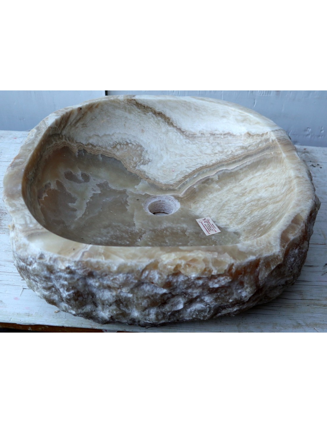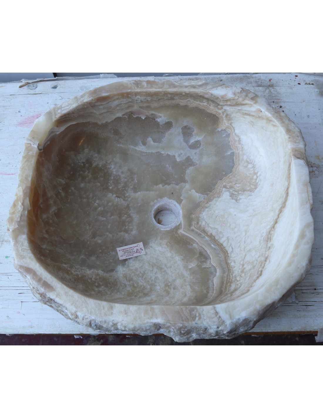 Fantastico lavandino in onice di color crema miele