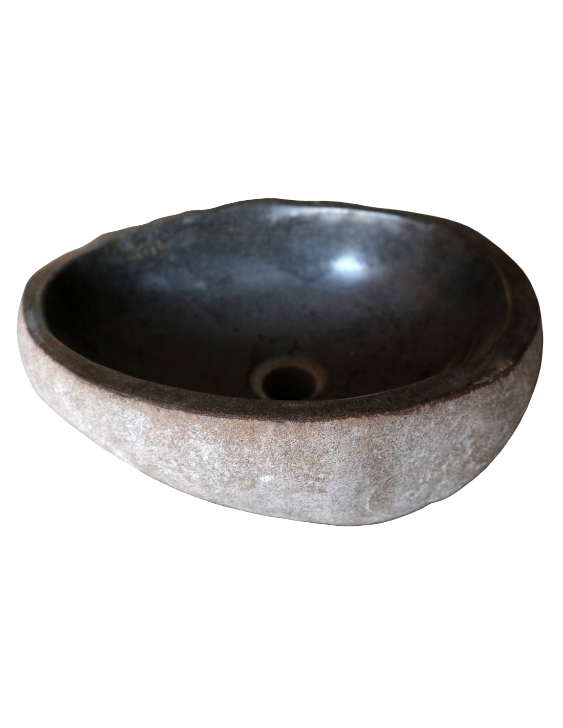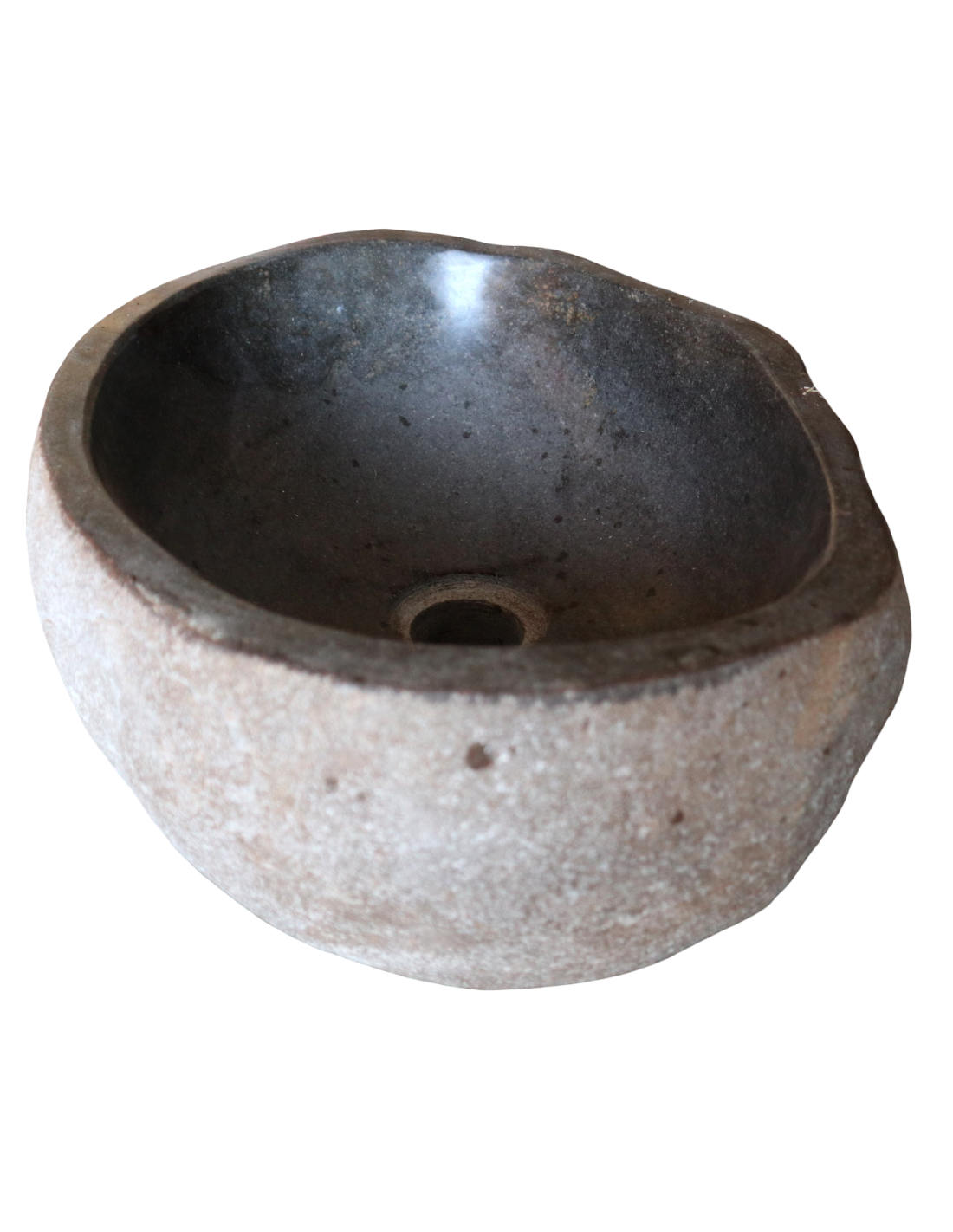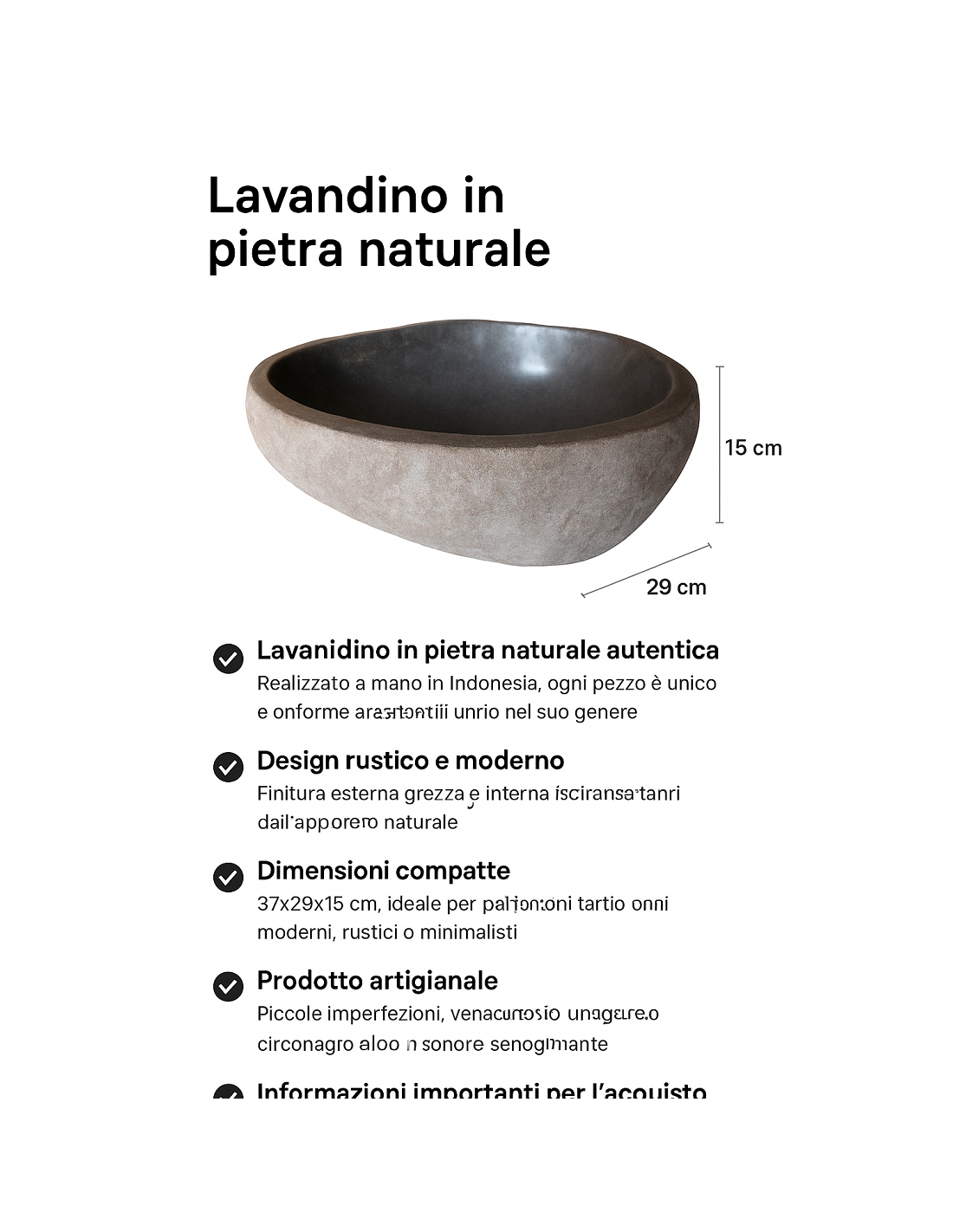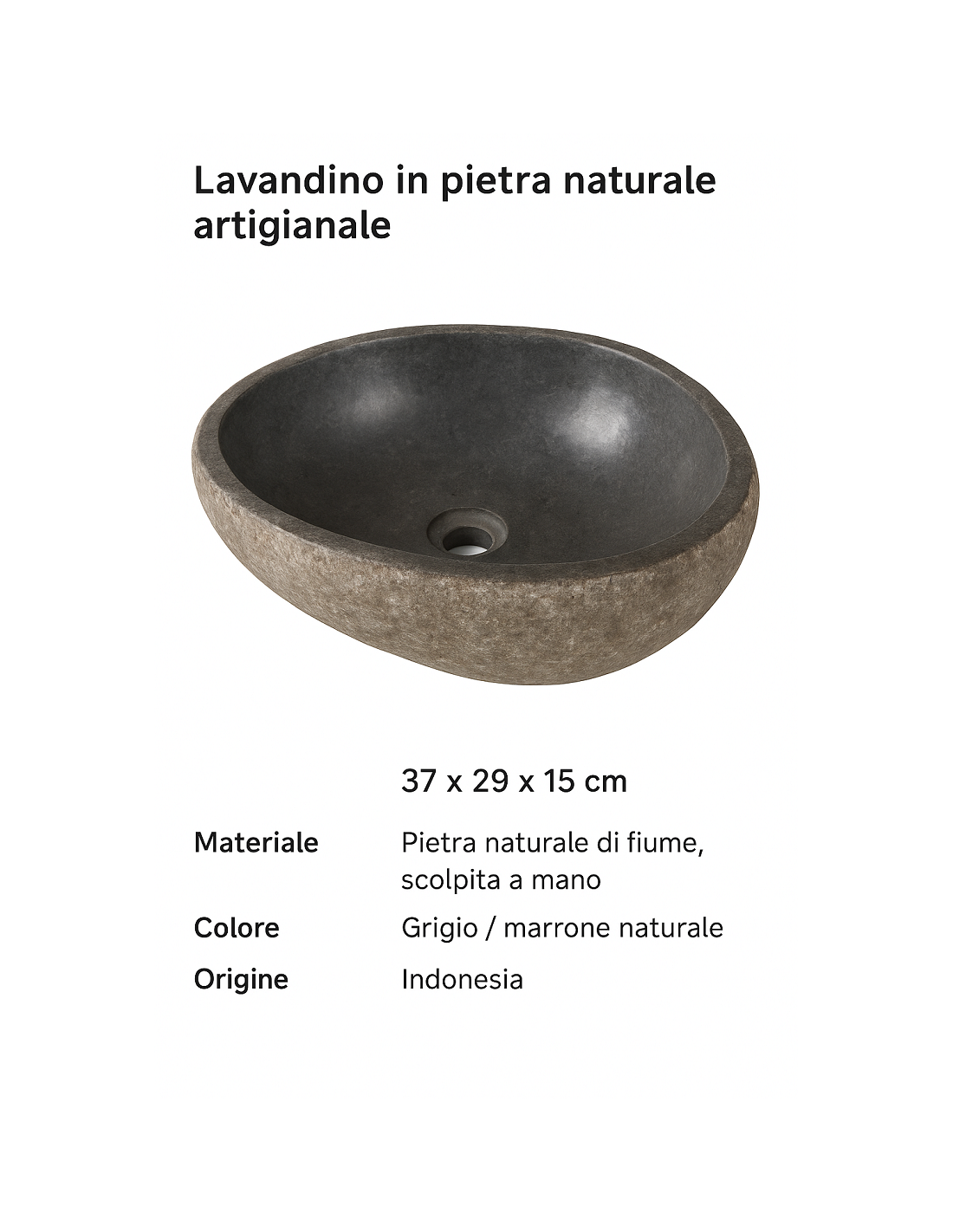 Lavandino in pietra naturale ovale cm 37x29x15 – Fatto a mano in Indonesia – Design rustico moderno