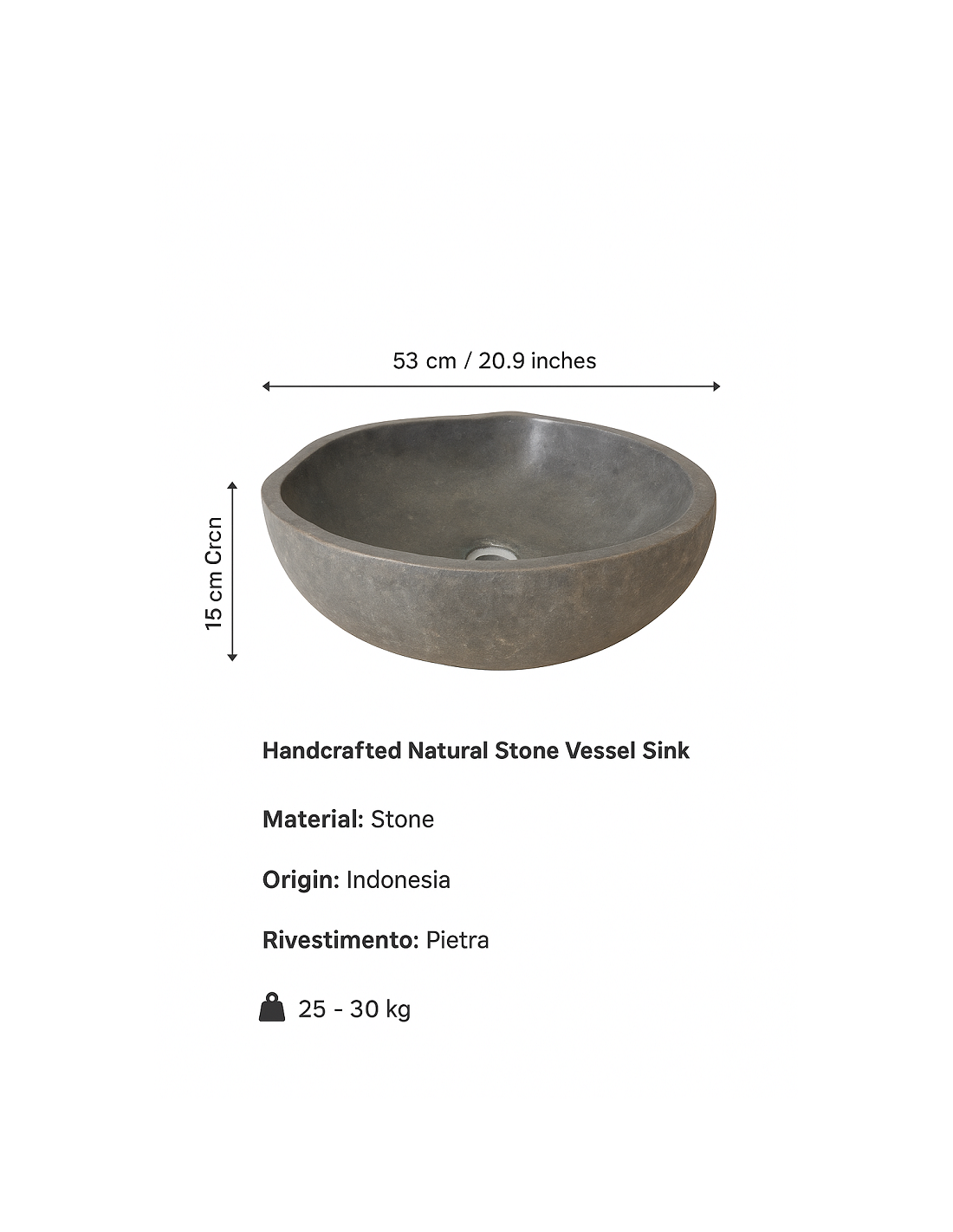 Lavandino in Pietra Naturale Fatto a Mano – Design Elegante, Origine Indonesia (53x43x15 cm)
