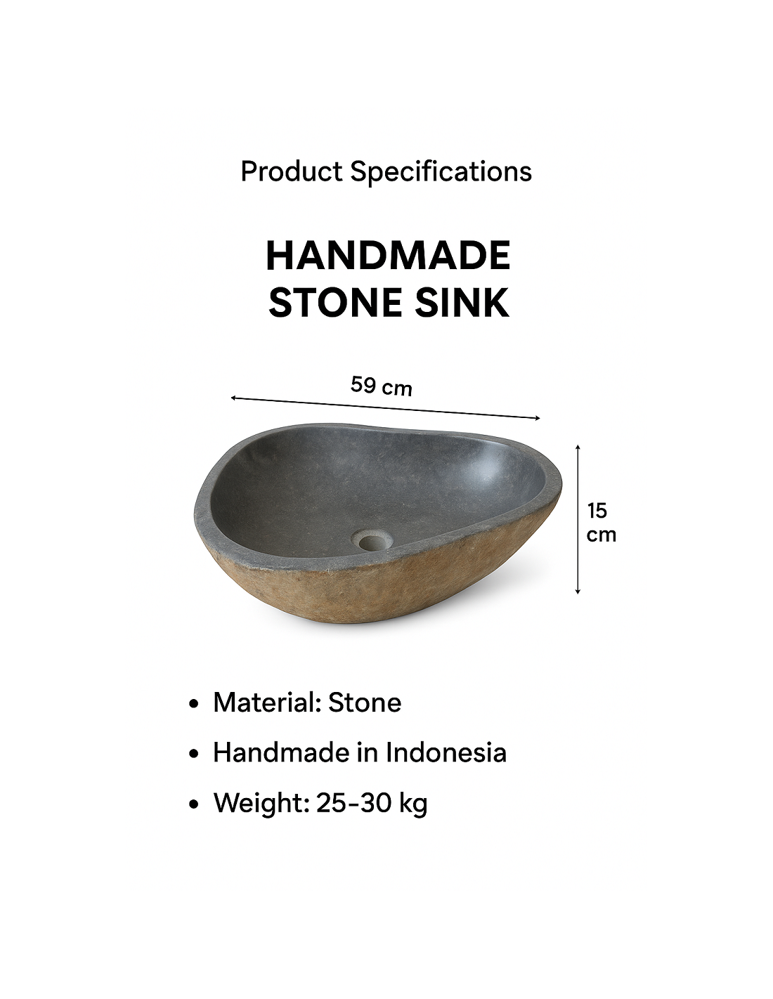 Lavandino in Pietra Naturale Fatto a Mano – Design Unico, Realizzato in Indonesia (59x44x15 cm)