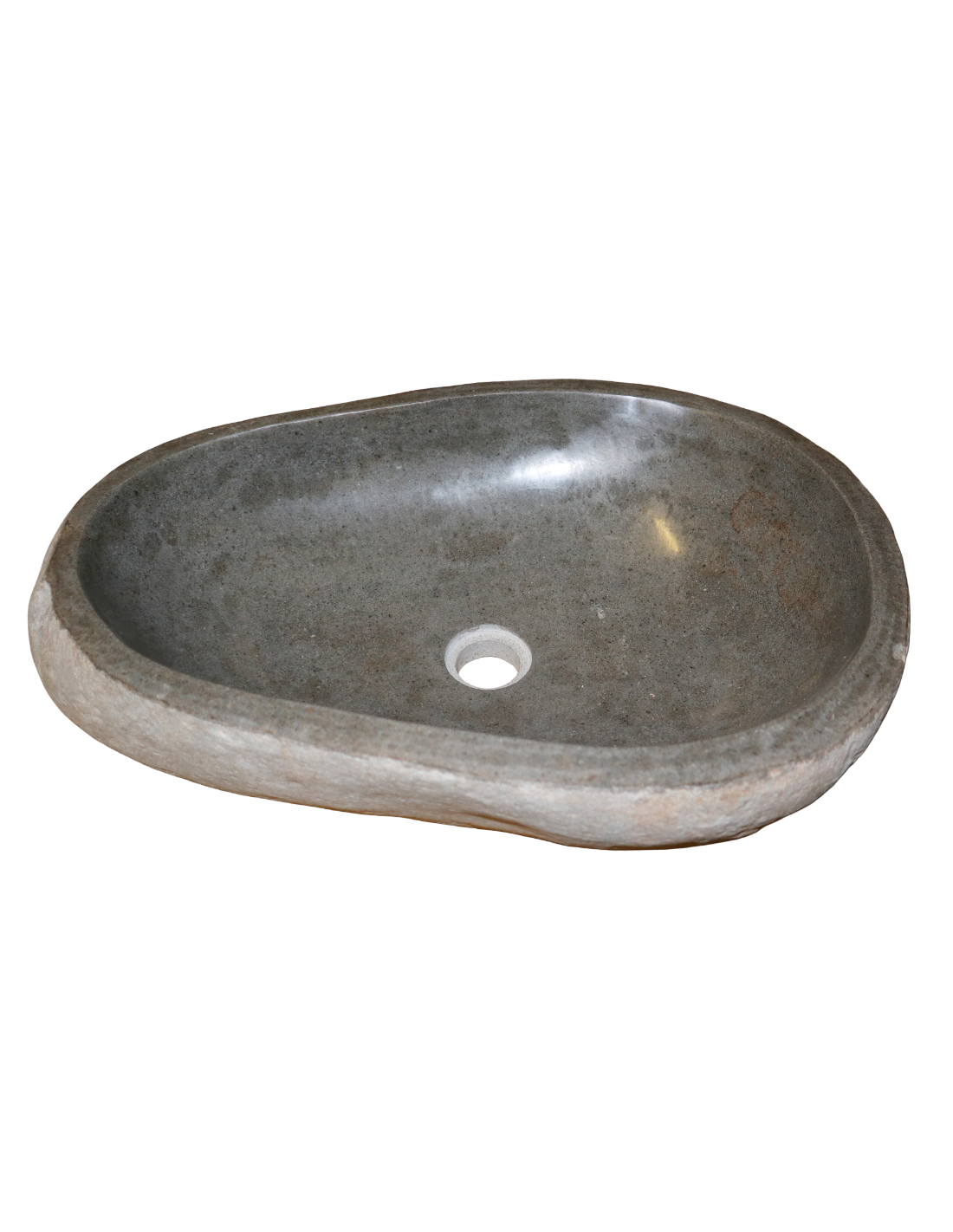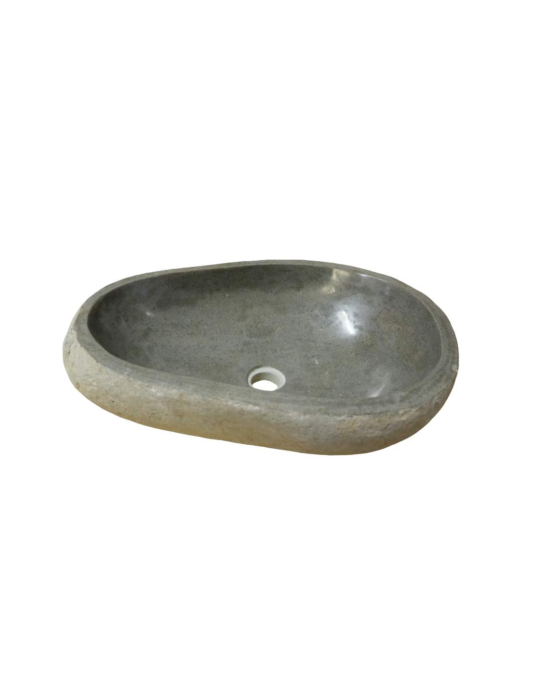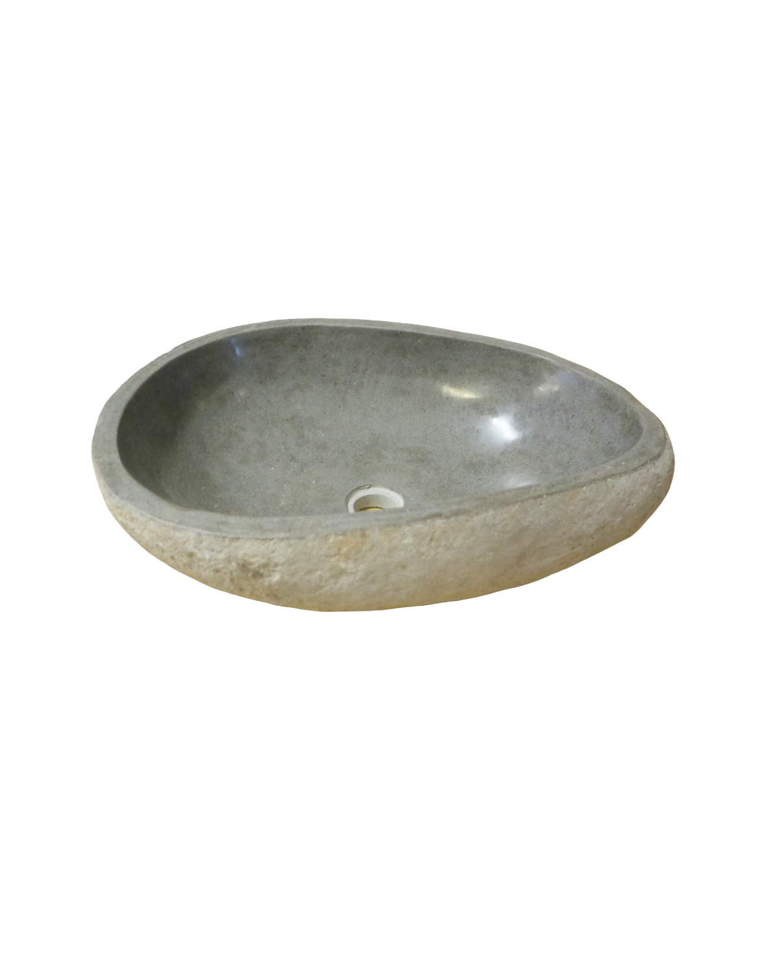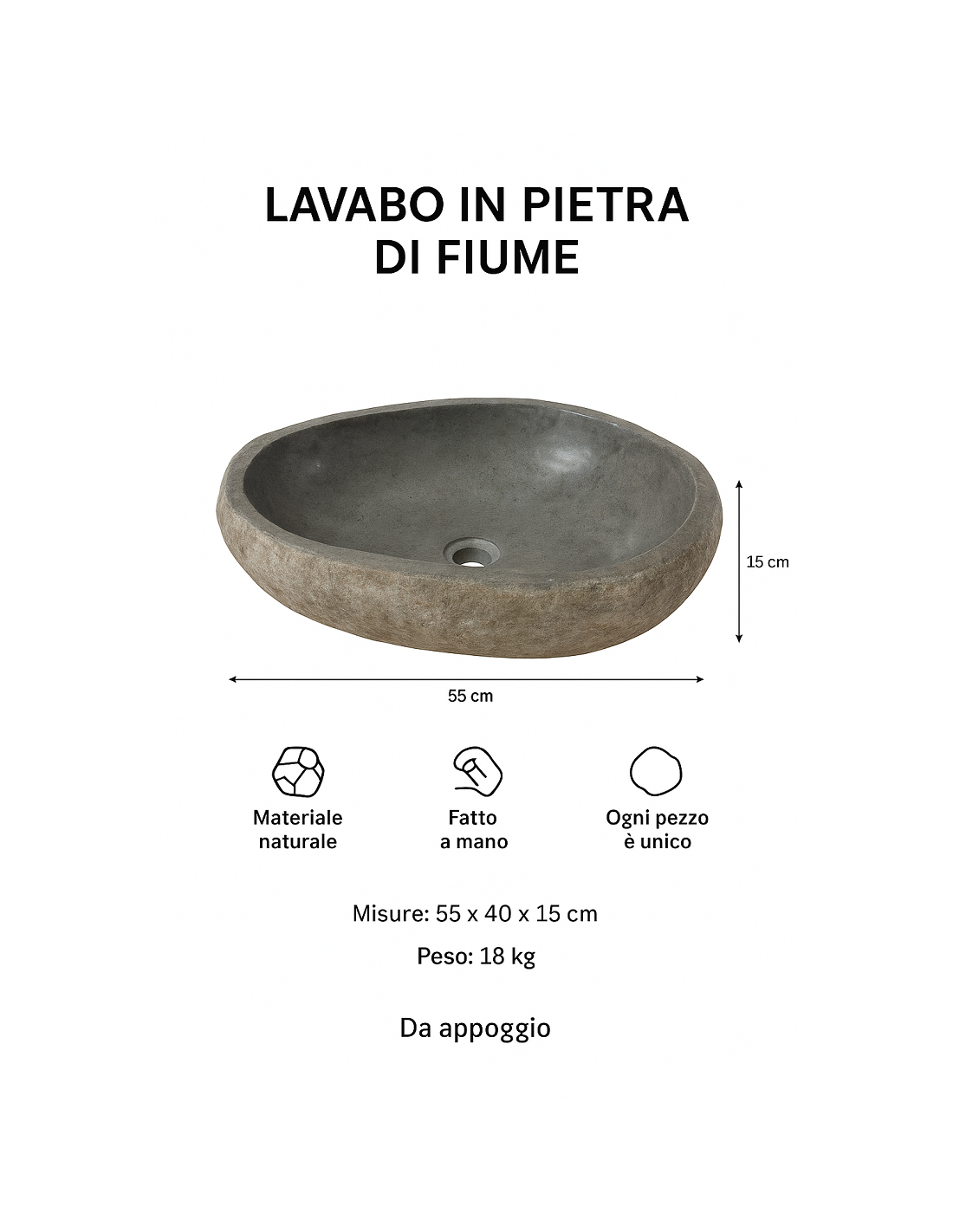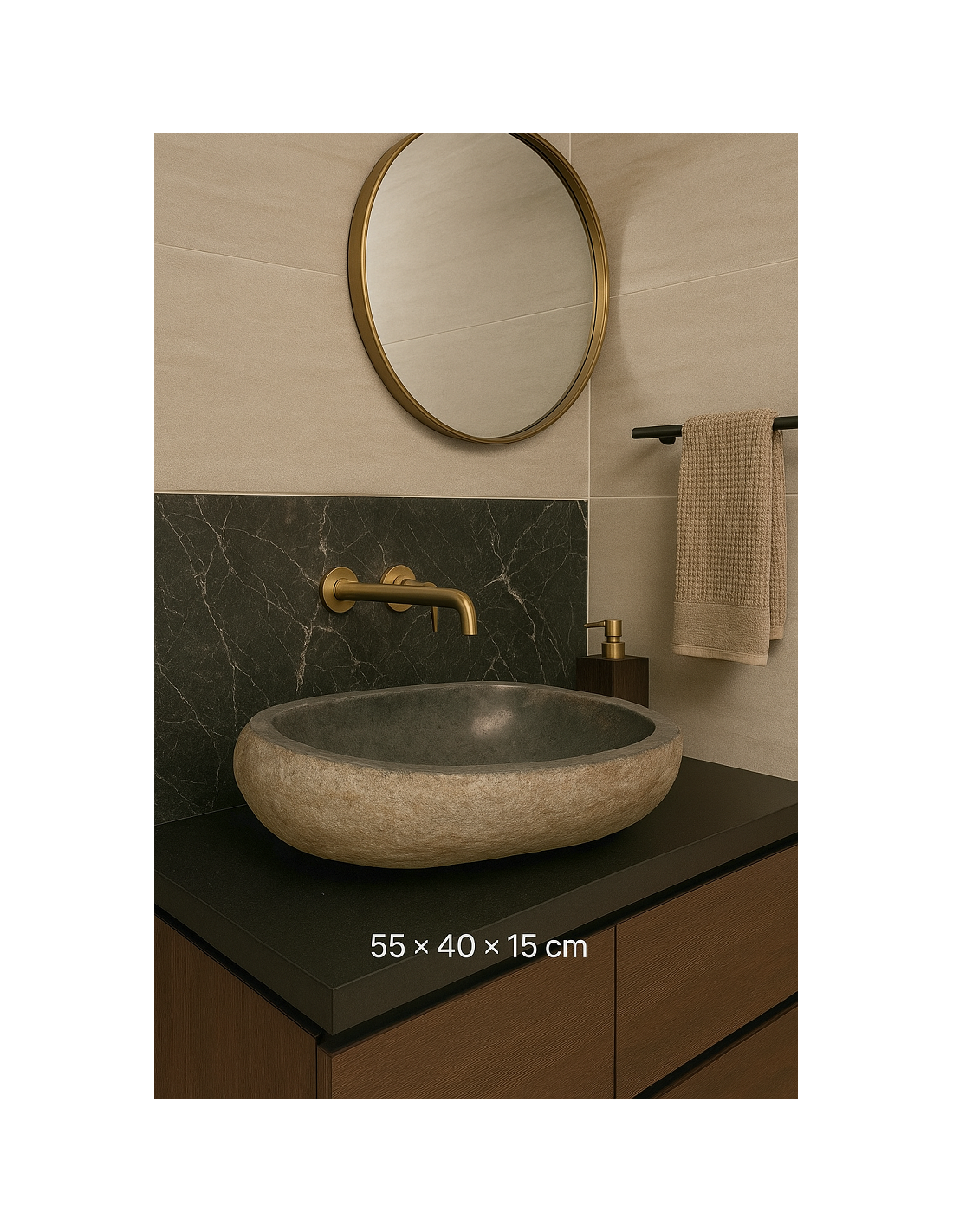 Lavabo in pietra di fiume naturale 55x40x15 cm – Lavandino da appoggio artigianale, design elegante per bagno moderno