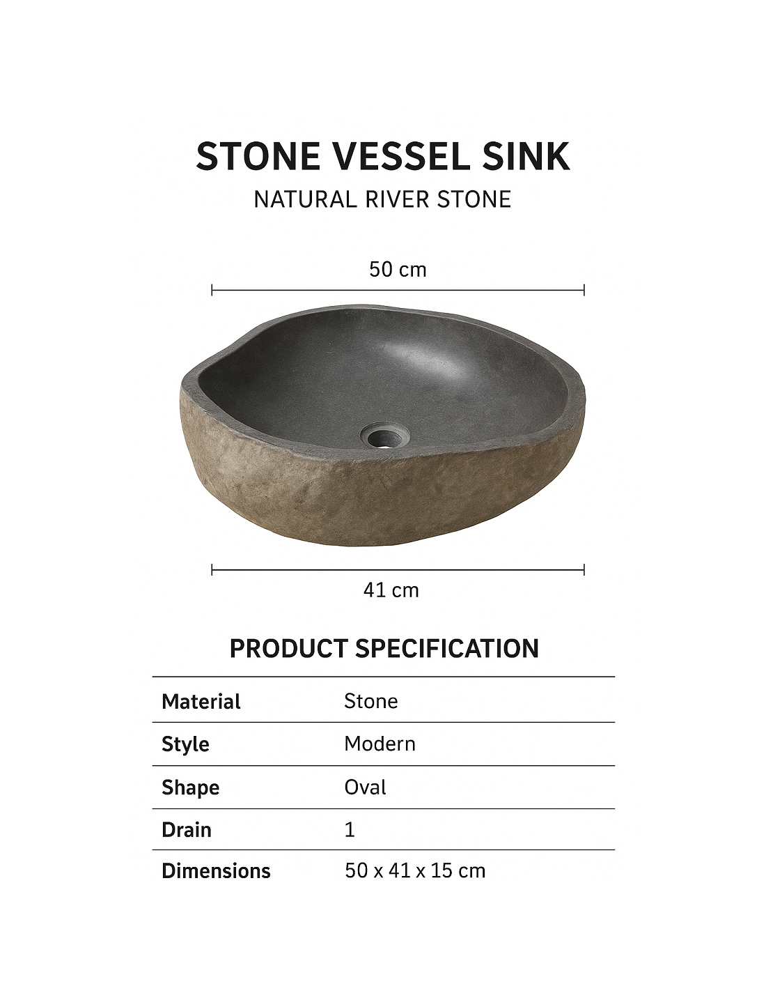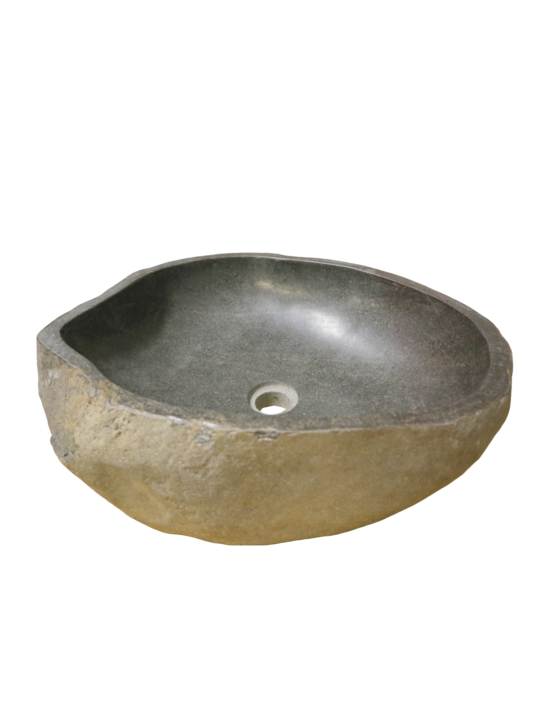 Ogni pezzo è scolpito a mano in Indonesia da un blocco unico di pietra di fiume, con l'interno accuratamente levigato per garantire praticità e pulizia, e l’esterno lasciato grezzo per esaltarne la natura autentica.