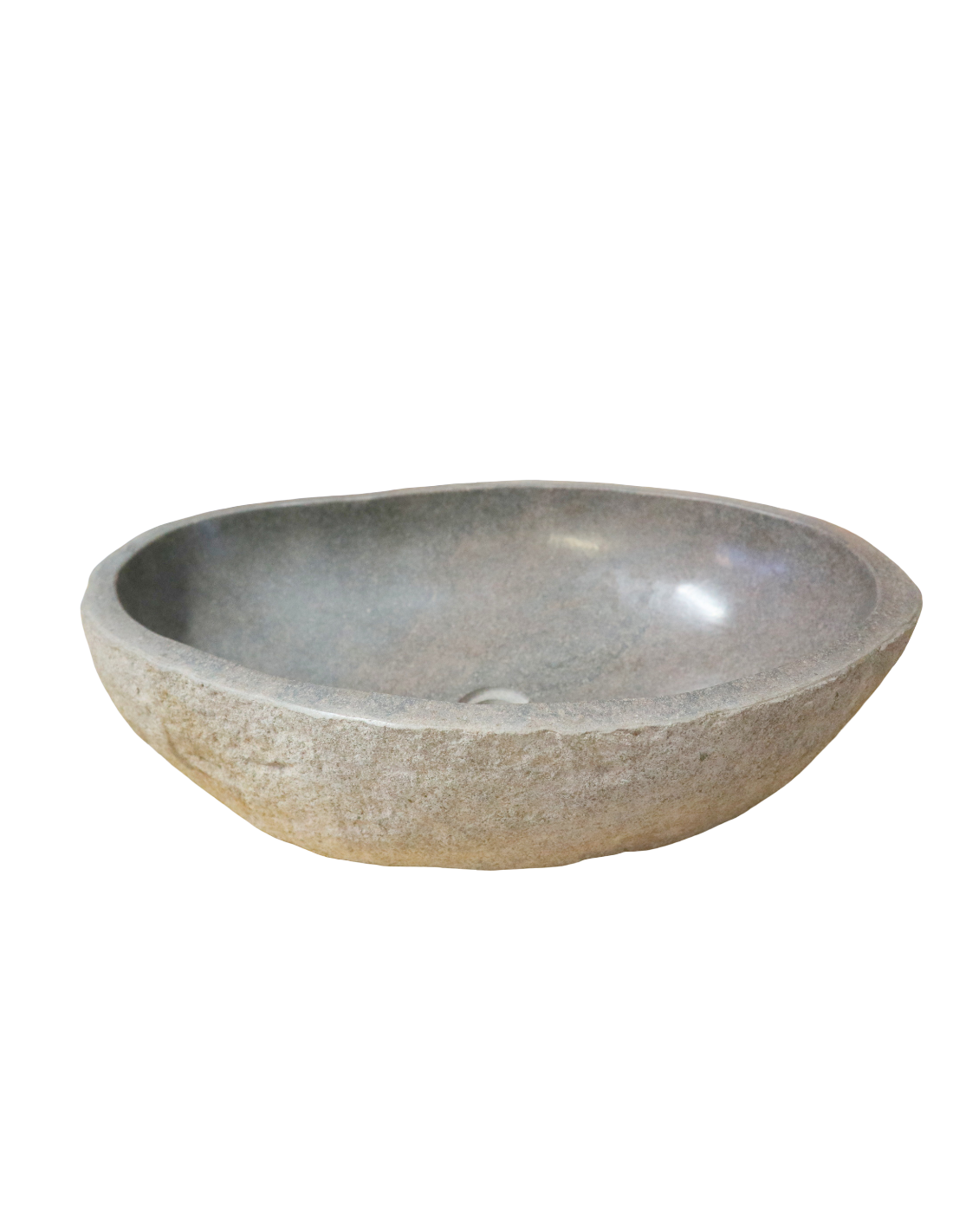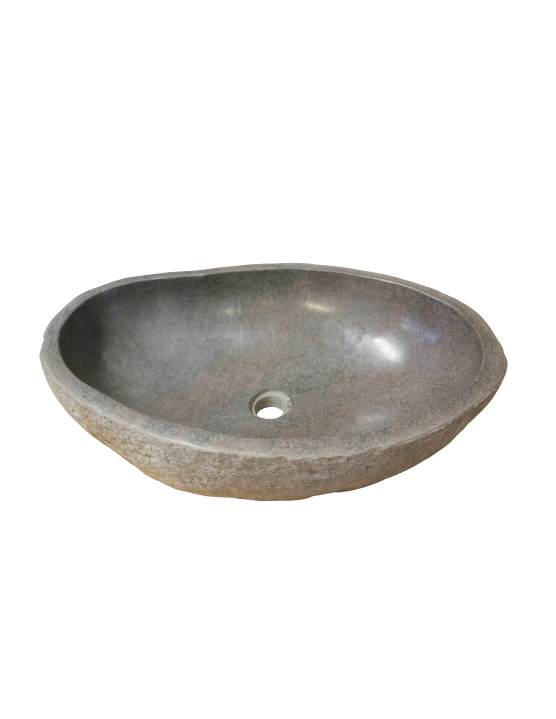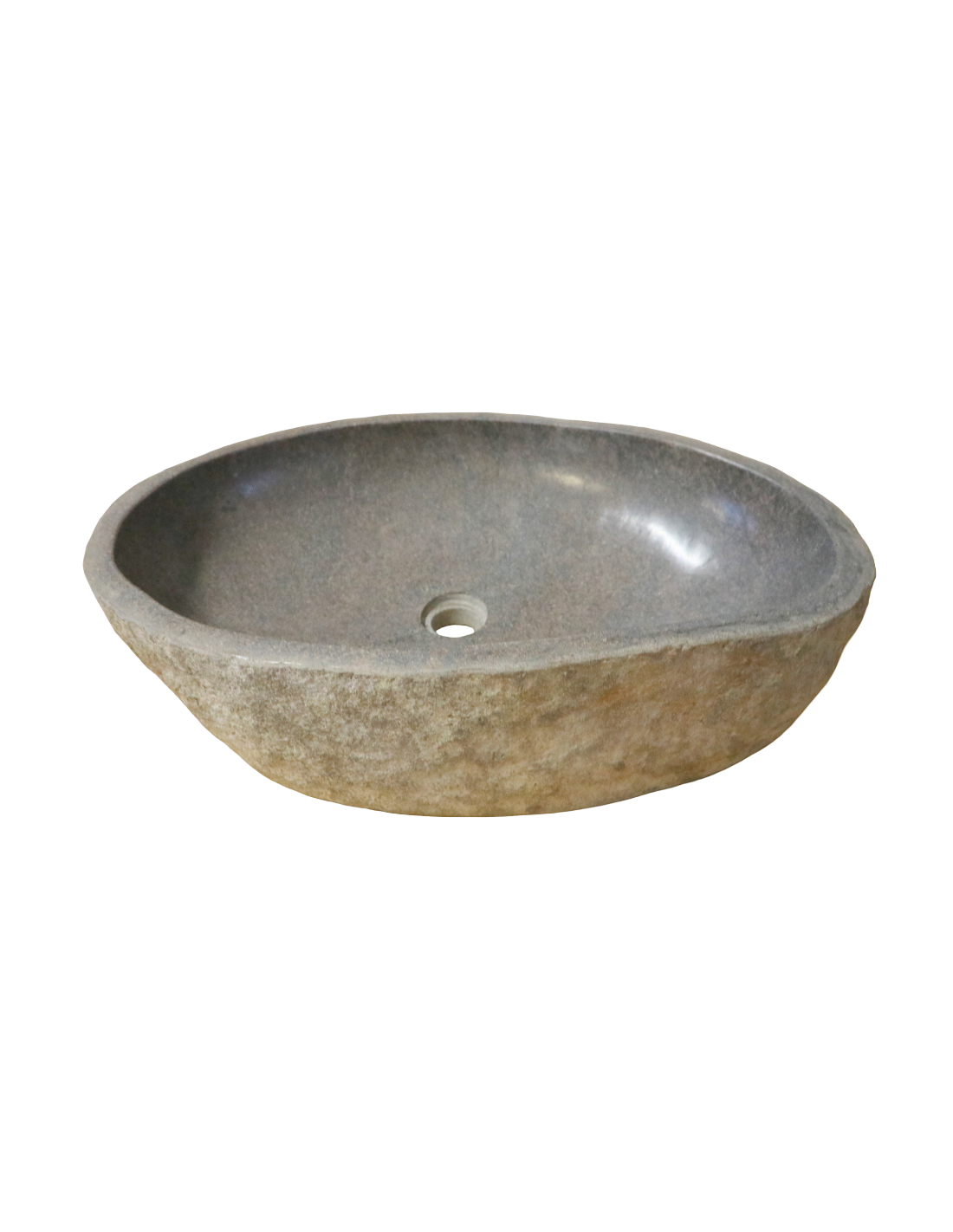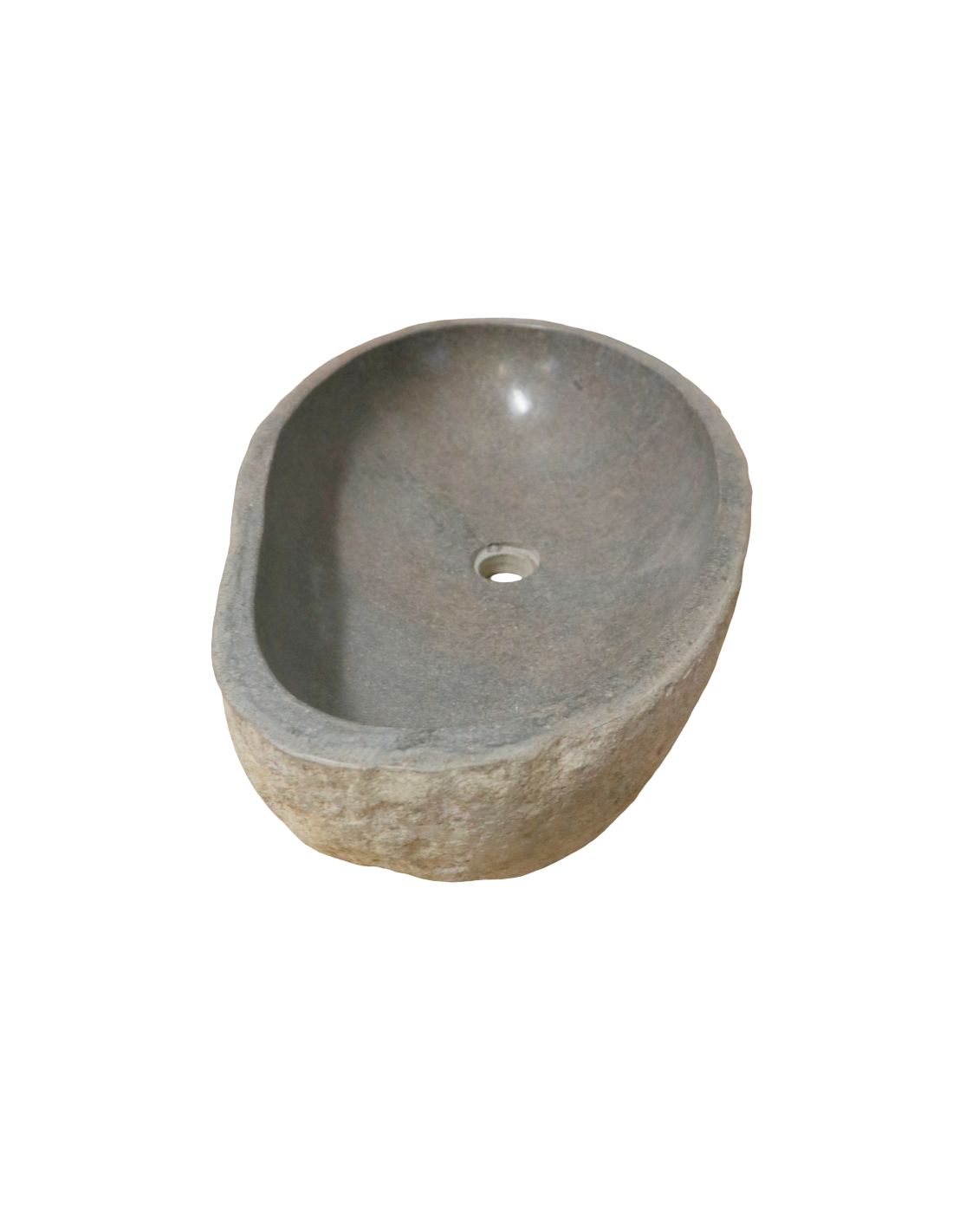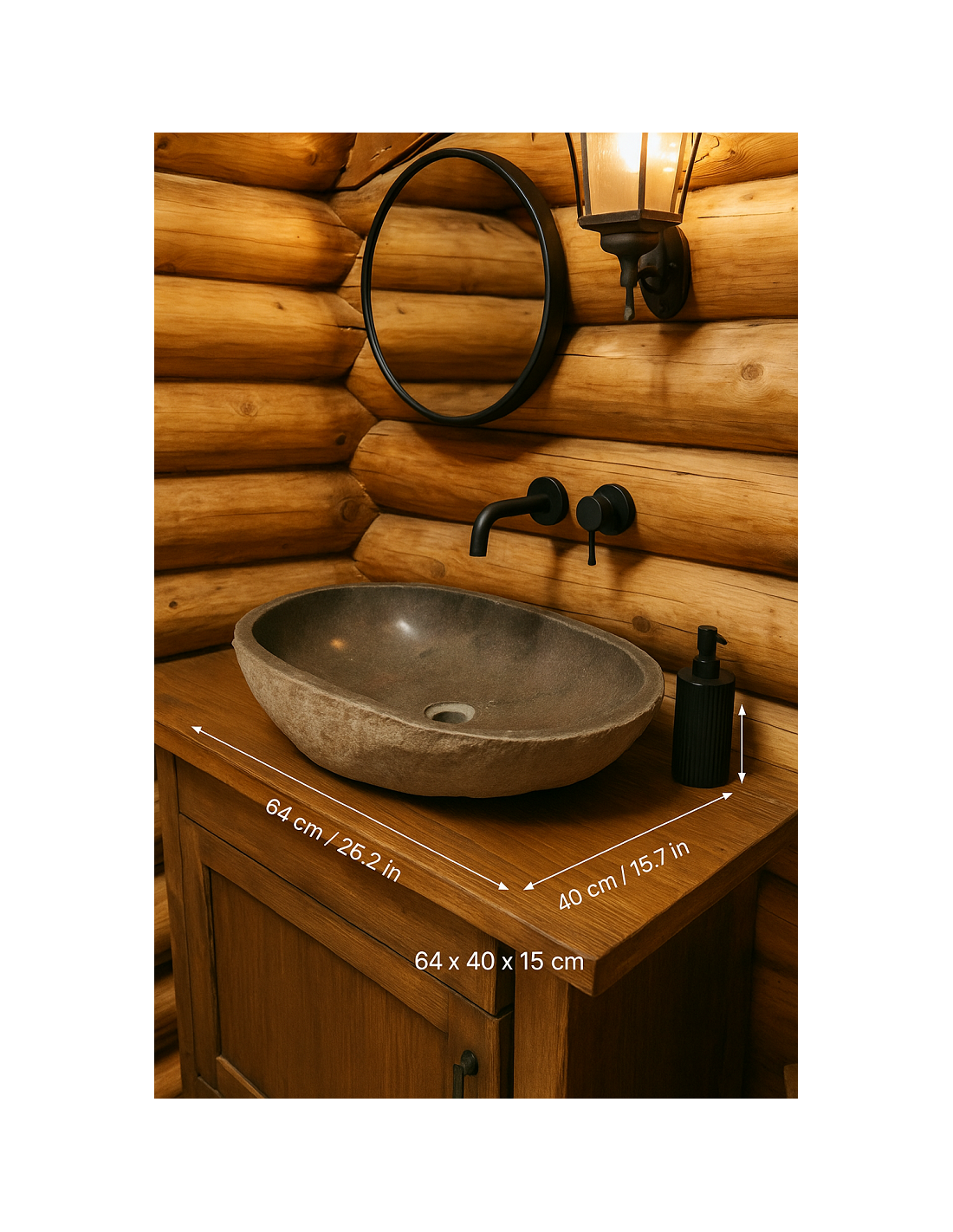Lavandino in Pietra di Fiume Naturale 64x40x15 cm | Lavabo da Appoggio Artigianale per Bagno Rustico o Moderno