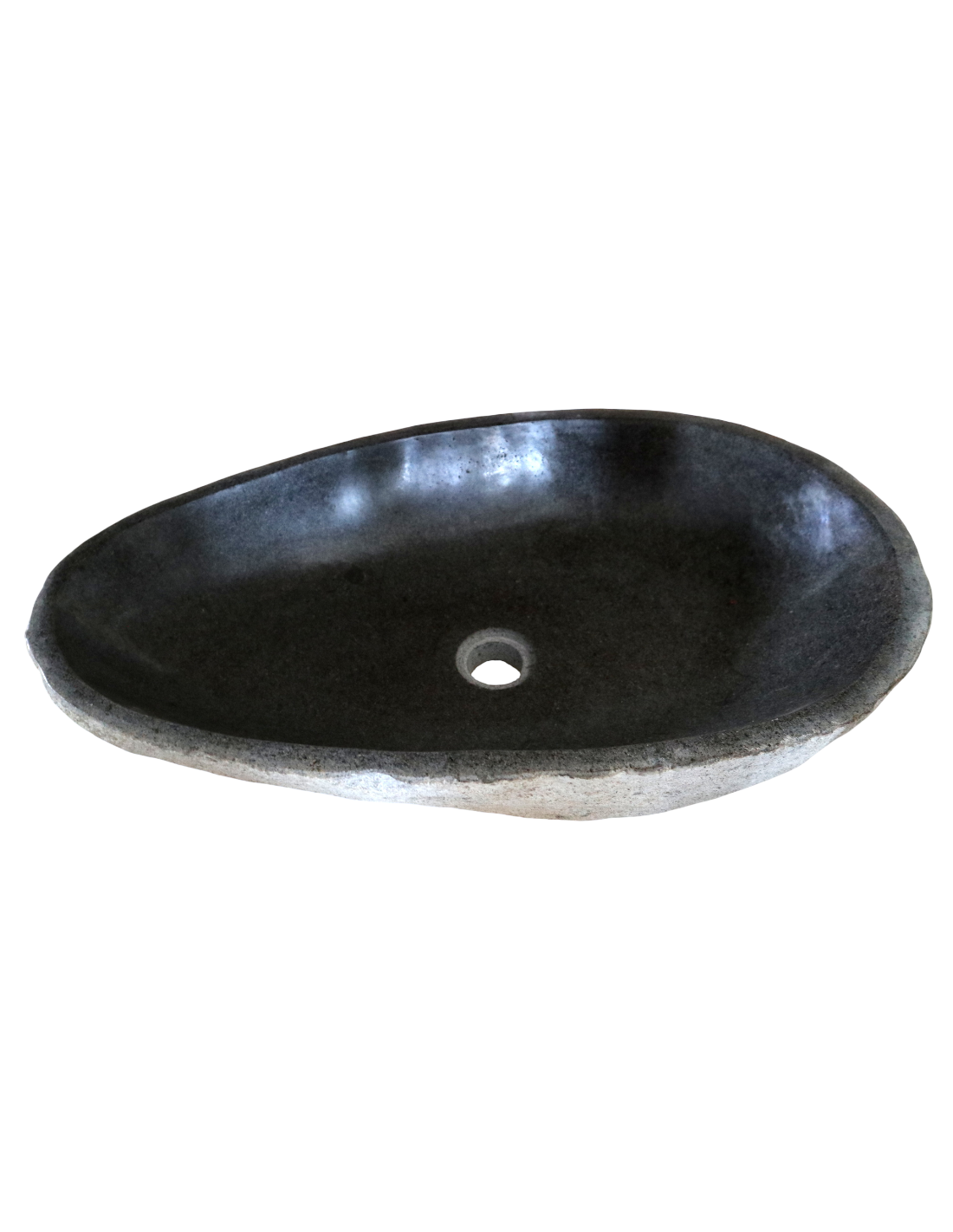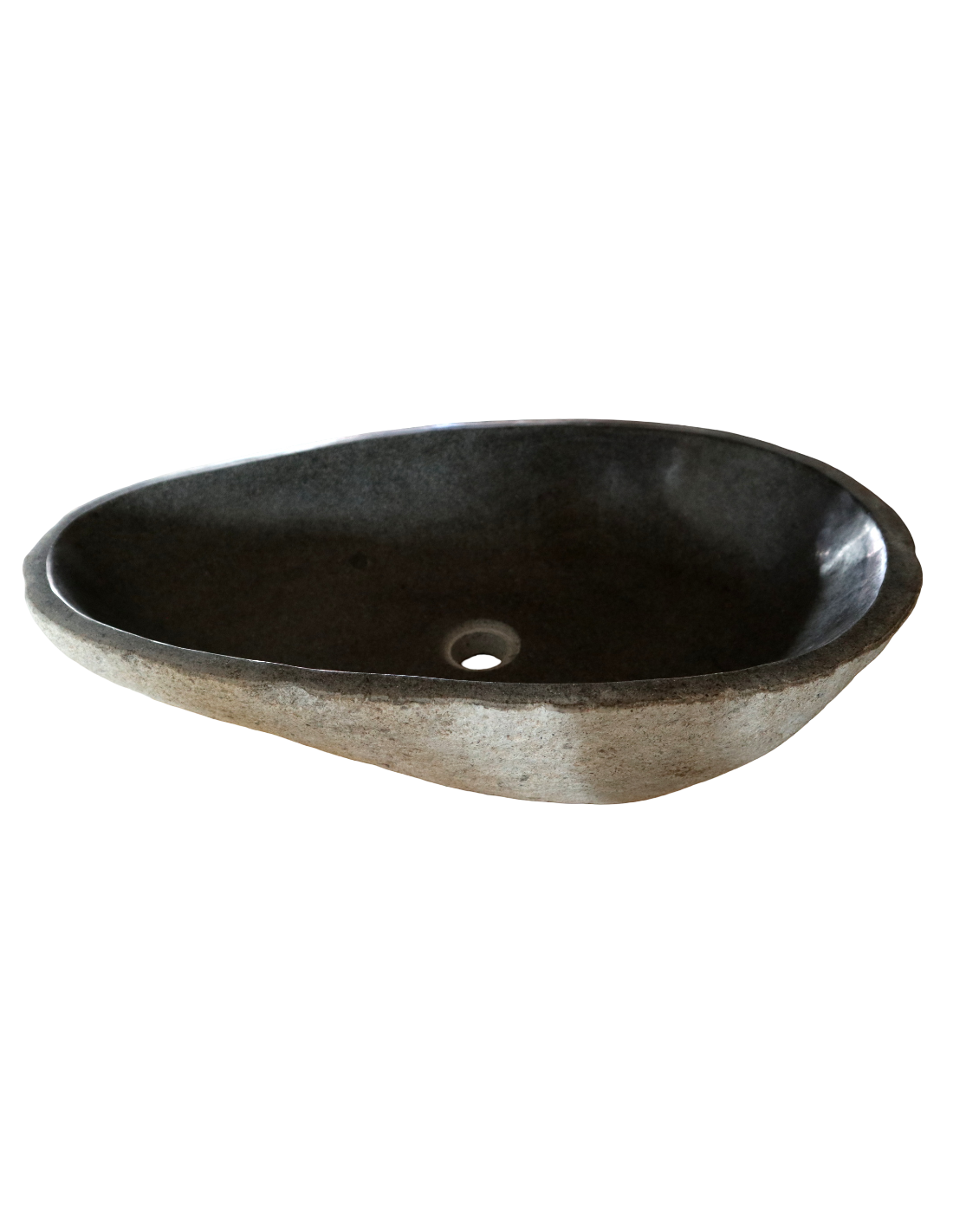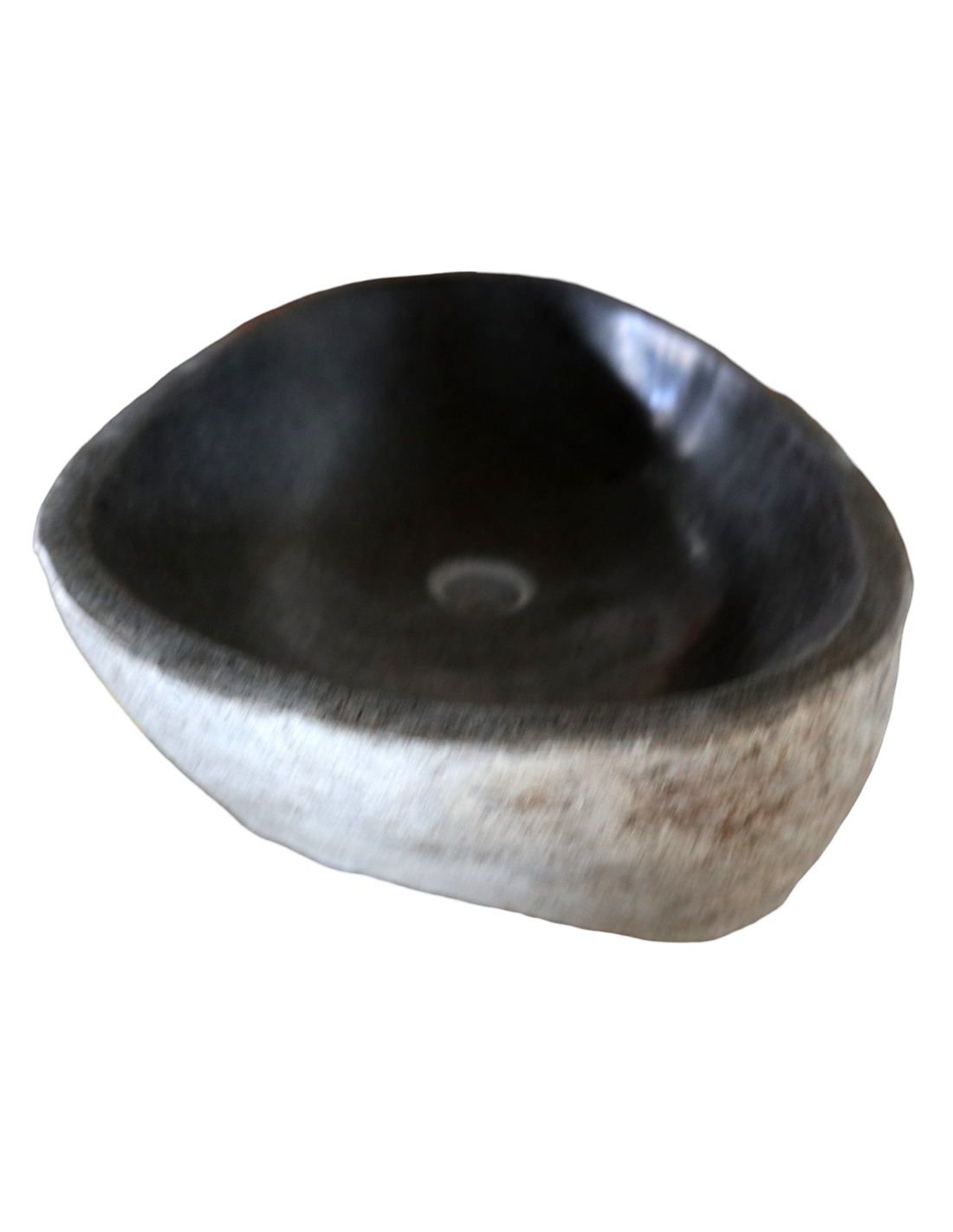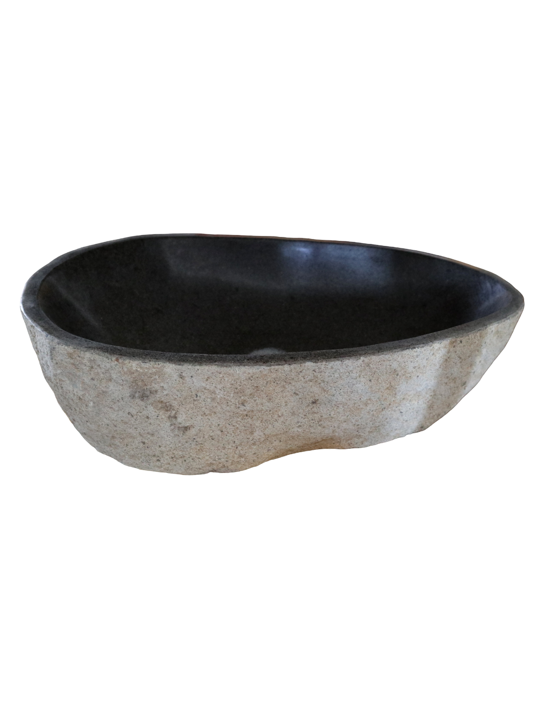 La superficie interna è levigata e lucida, facile da pulire e gradevole al tatto, mentre l’esterno mantiene l’aspetto grezzo e naturale della pietra, per un perfetto equilibrio tra eleganza moderna e fascino primitivo.