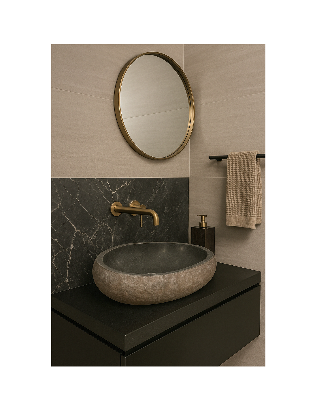 Lavandino in Pietra di Fiume Naturale 55x38x15 cm – Design Unico ed Elegante