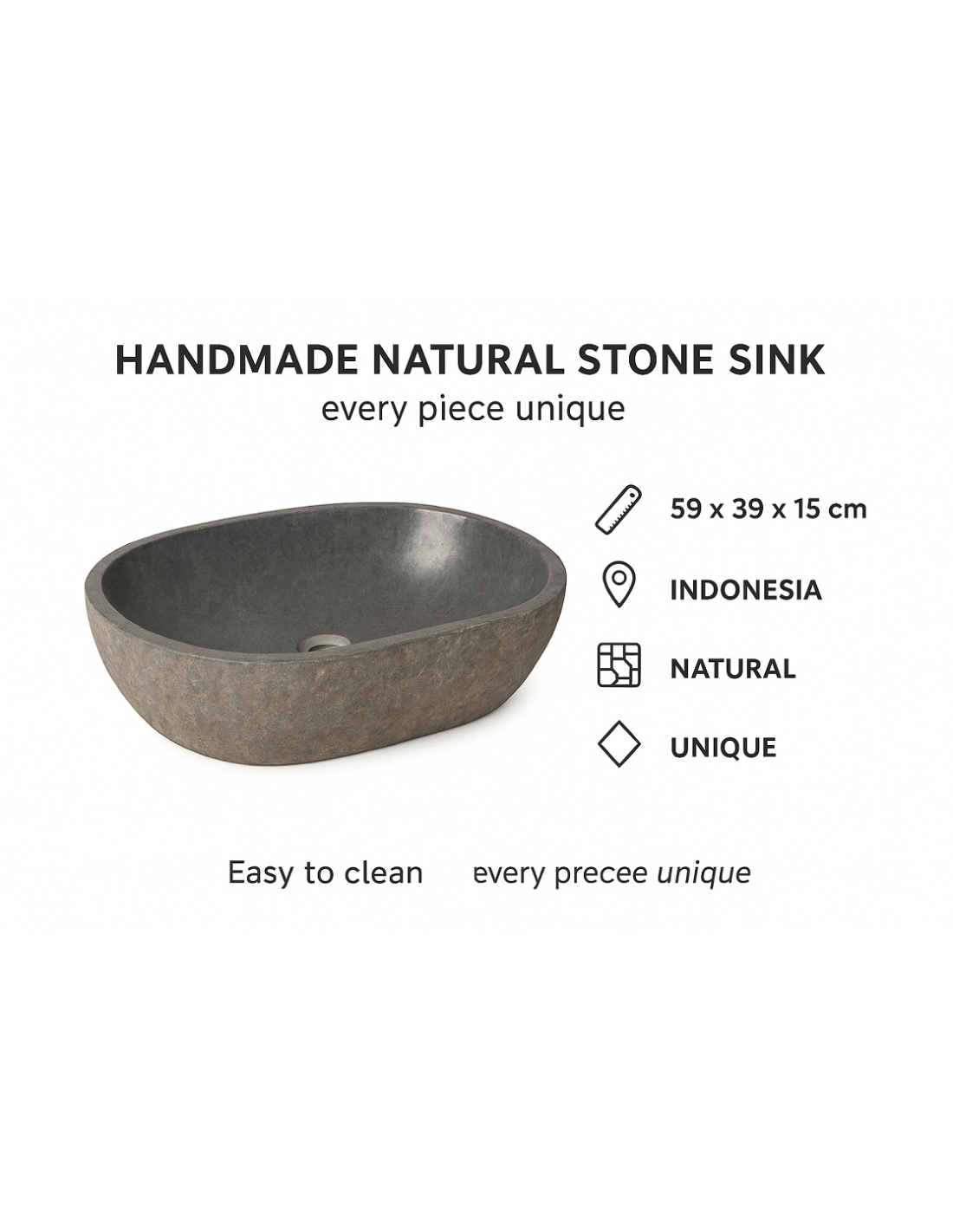 Lavabo in pietra naturale artigianale 59x39x15 cm – Design moderno