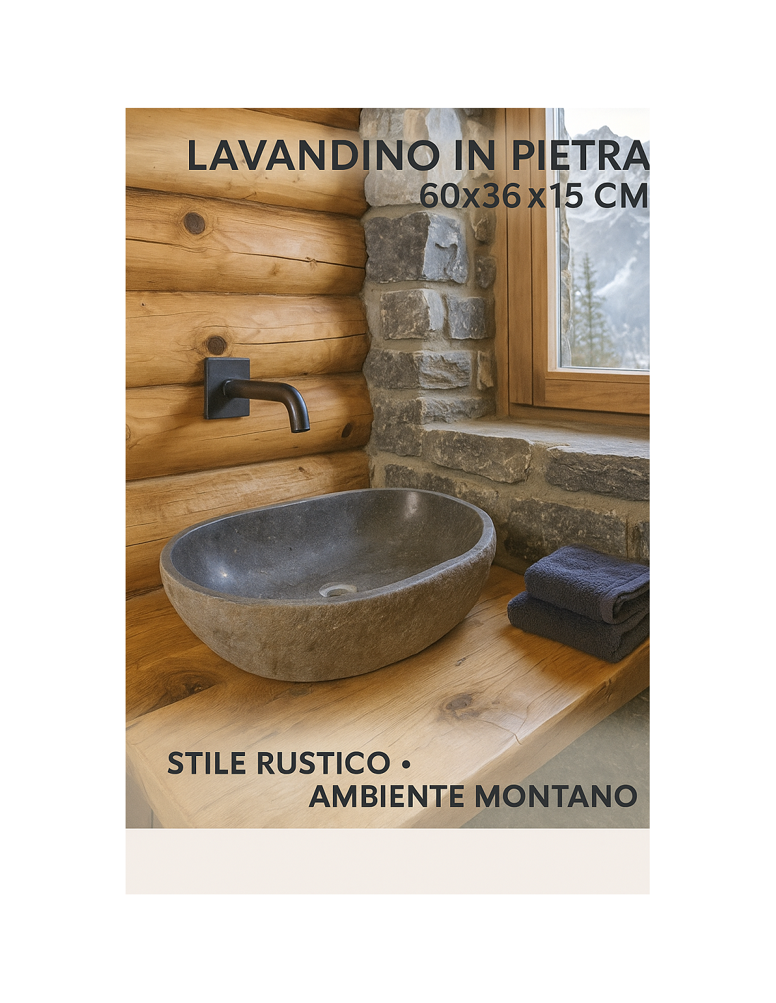 Lavabo in pietra naturale 60x36x15 cm – Design artigianale sasso di fiume