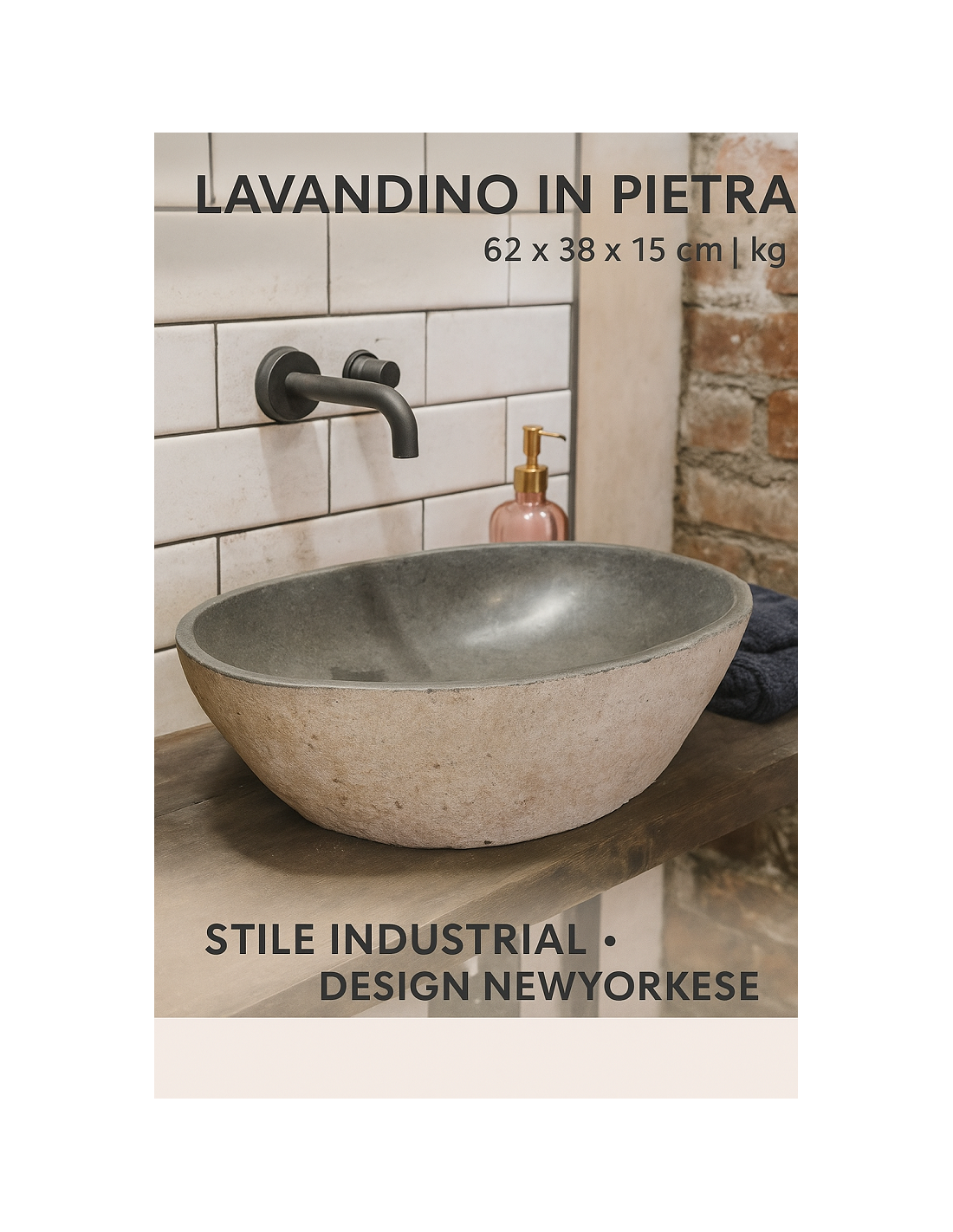 Lavabo in pietra naturale 62x38x15 cm – Design artigianale sasso di fiume