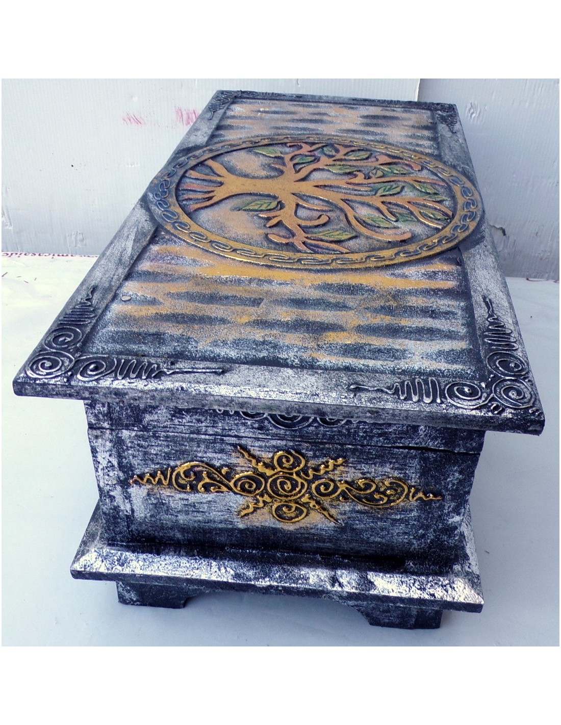 bauletto baule in legno mdf con albero della vita argento cm 40x20x16