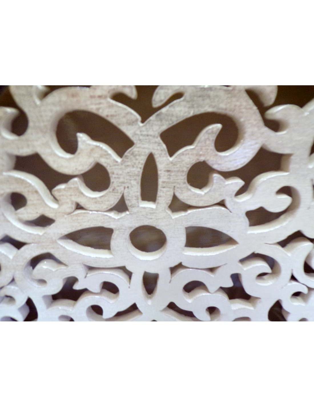 Scatola Portagioie o svuota tasche in legno mdf traforata bianco argento cm 35x25x7