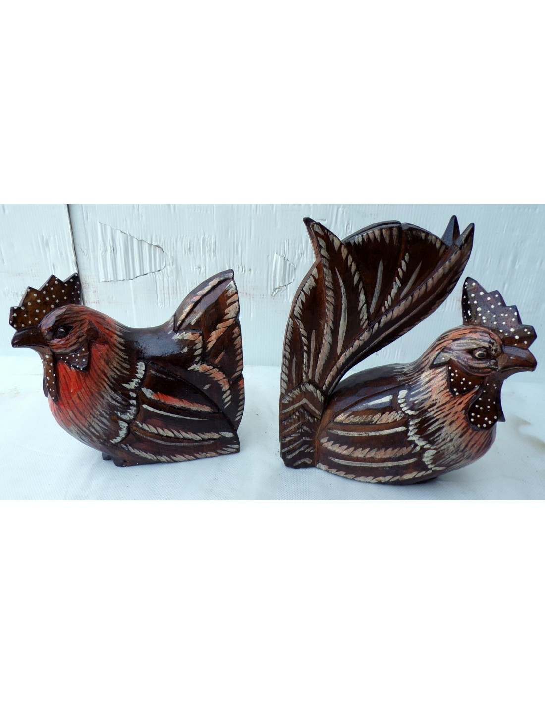 Bellissima coppia di gallo e gallina in legno realizzati e dipinti completamente a mano.