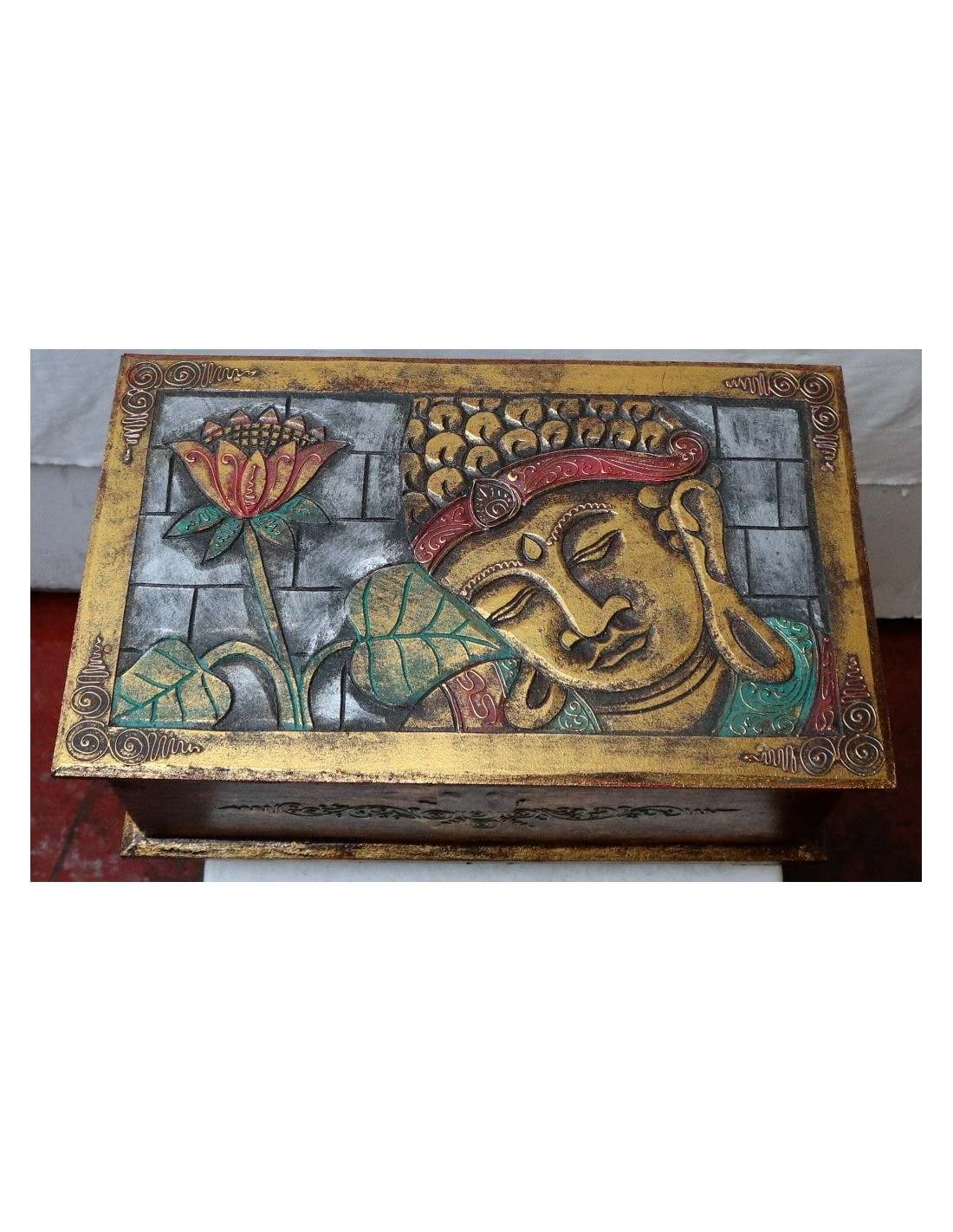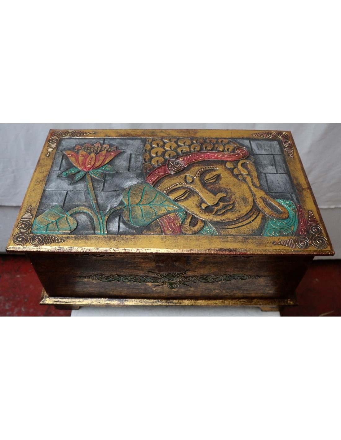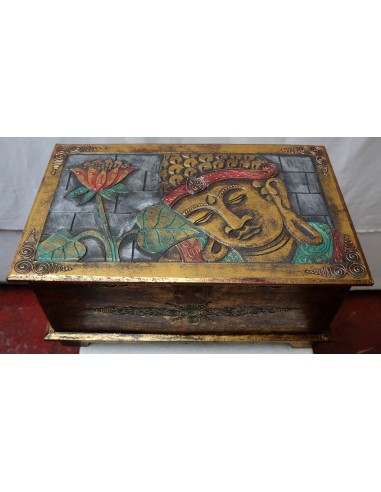 Esplora la bellezza e la spiritualità del nostro Baule Cassapanca in legno di albesia, impreziosito dal raffinato volto di Buddha color oro. Con dimensioni di cm 50x30x25, questo baule è un autentico gioiello dell'artigianato indonesiano, dove i difetti si trasformano in pregi, evidenziando l'unicità e l'autenticità di ogni pezzo.