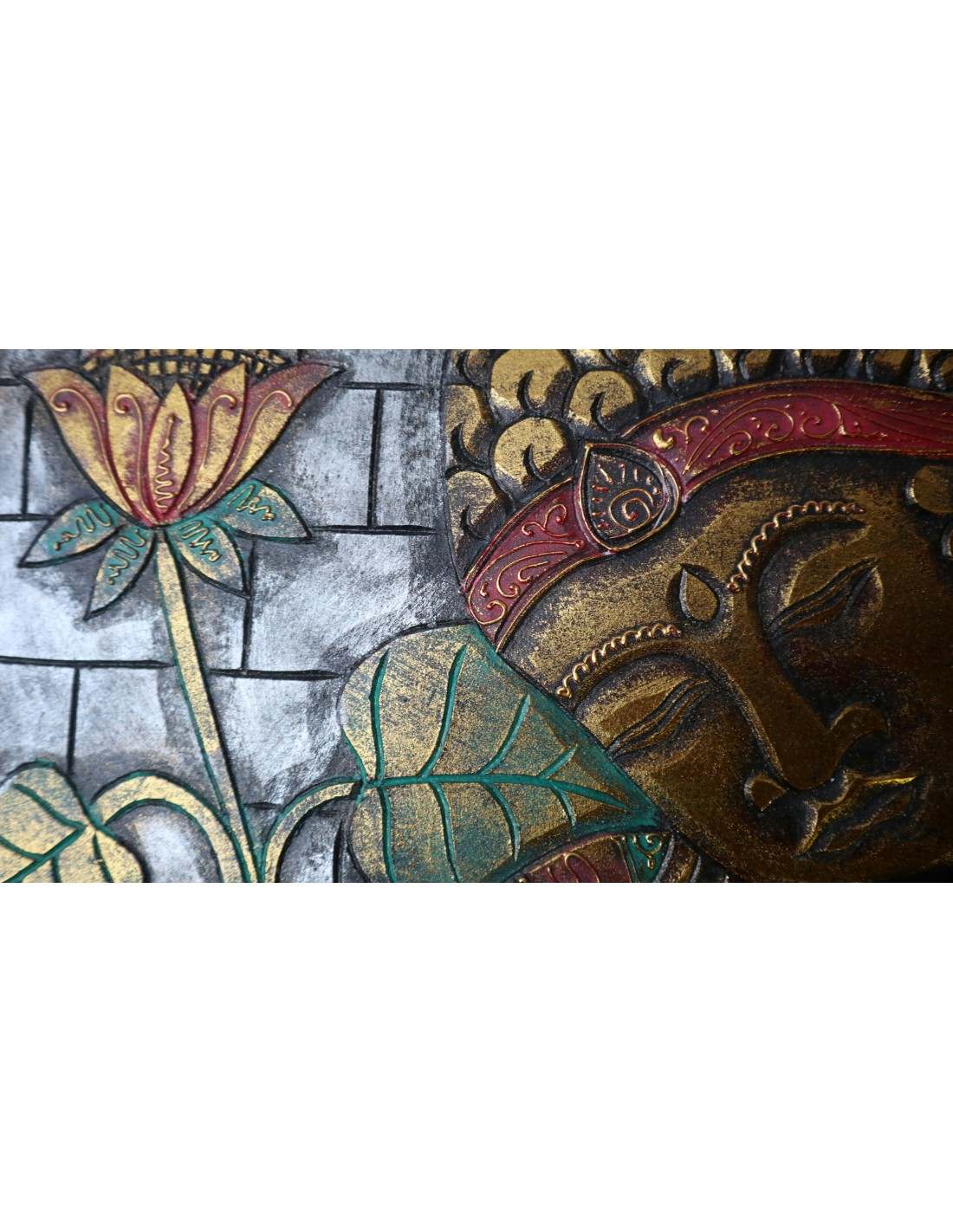 Design Elegante con Volto di Buddha: Il baule cassapanca presenta un design sofisticato impreziosito dal volto di Buddha color oro, aggiungendo un tocco di spiritualità e tranquillità al tuo ambiente. Ogni baule è un'opera d'arte unica, realizzata con attenzione ai dettagli