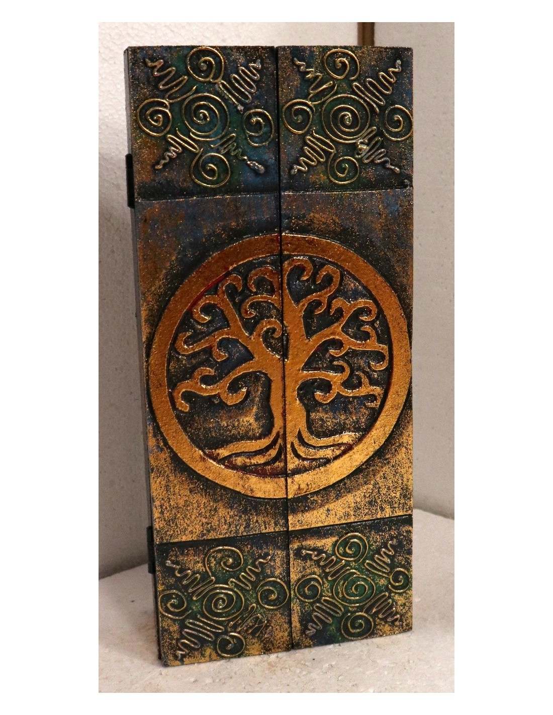 Benvenuti nell'universo dell'artigianato esclusivo con il nostro Portachiavi da muro in legno argento-oro MDF, arricchito da un elegante Albero della Vita. Realizzato a mano in Indonesia, questo portachiavi è molto più di un semplice accessorio; è un'opera d'arte che combina funzionalità e estetica.