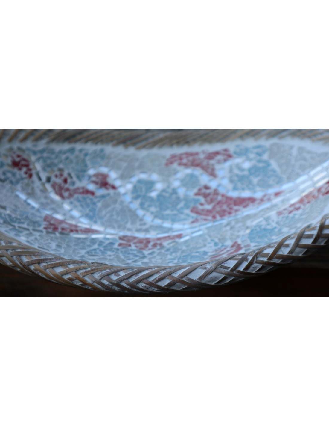 Un'elegante fusione tra arte e funzionalità, questo portagioie o svuotatasche è realizzato in terracotta e decorato con un mosaico in vetro raffigurante l'iconico Albero della Vita.