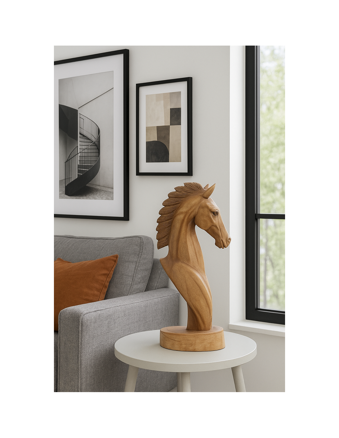 Amicasa Idee per La CasaUn pezzo d’arredo elegante e senza tempo, che unisce la forza e la grazia del cavallo con il calore naturale del legno massello di teak.