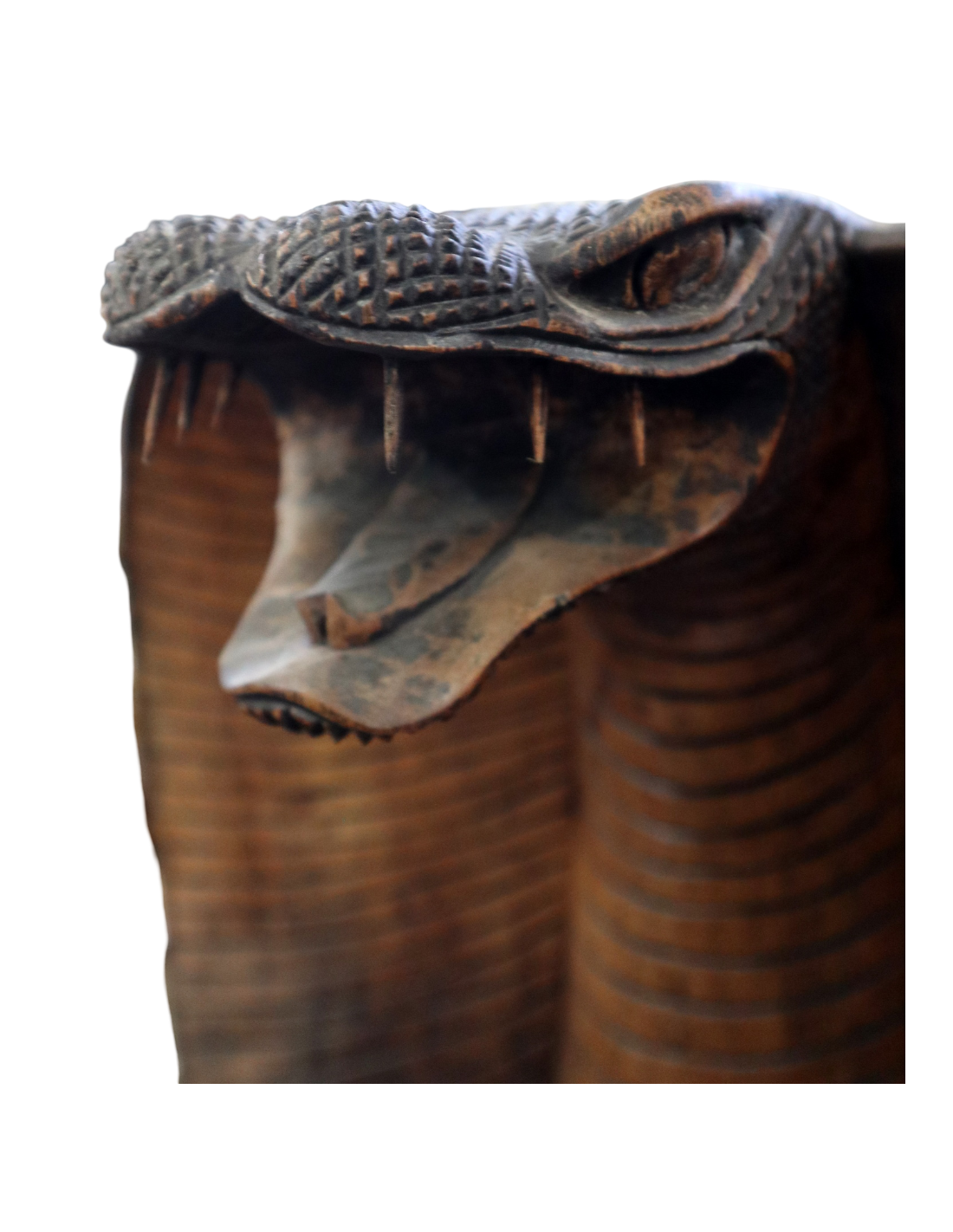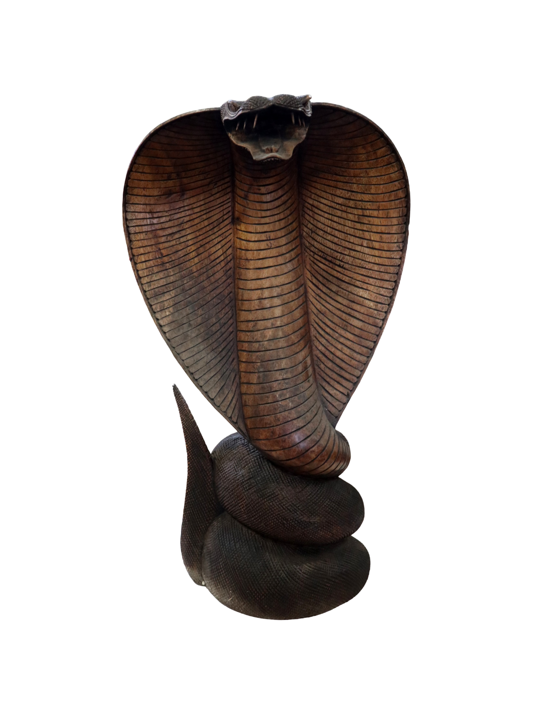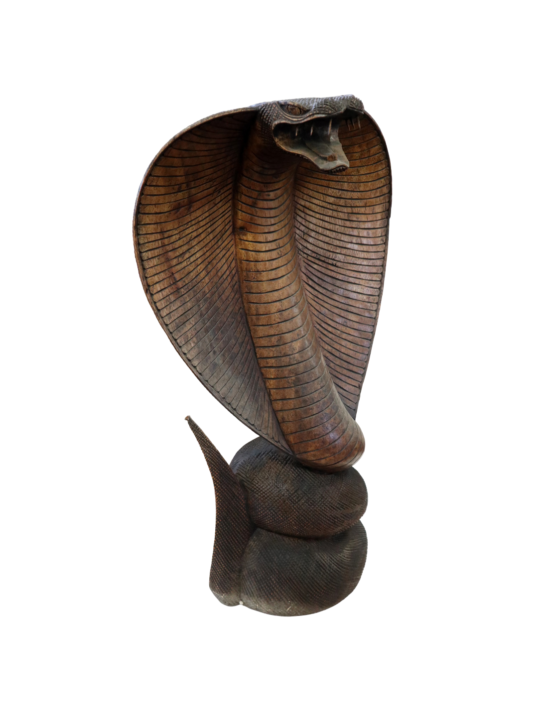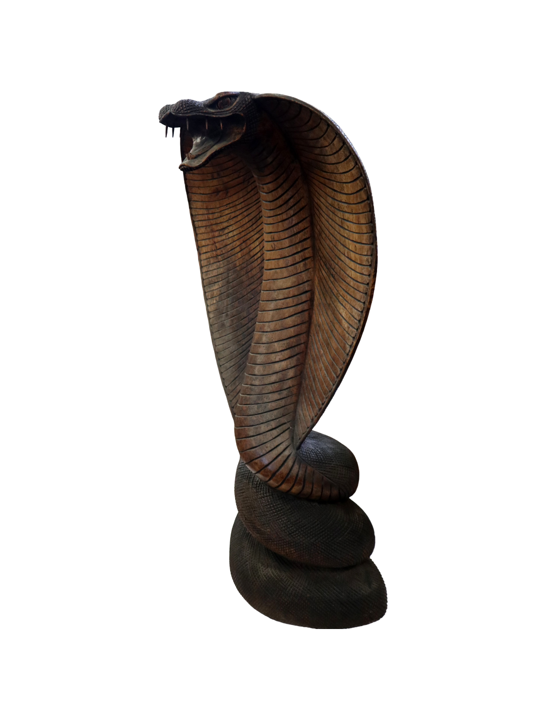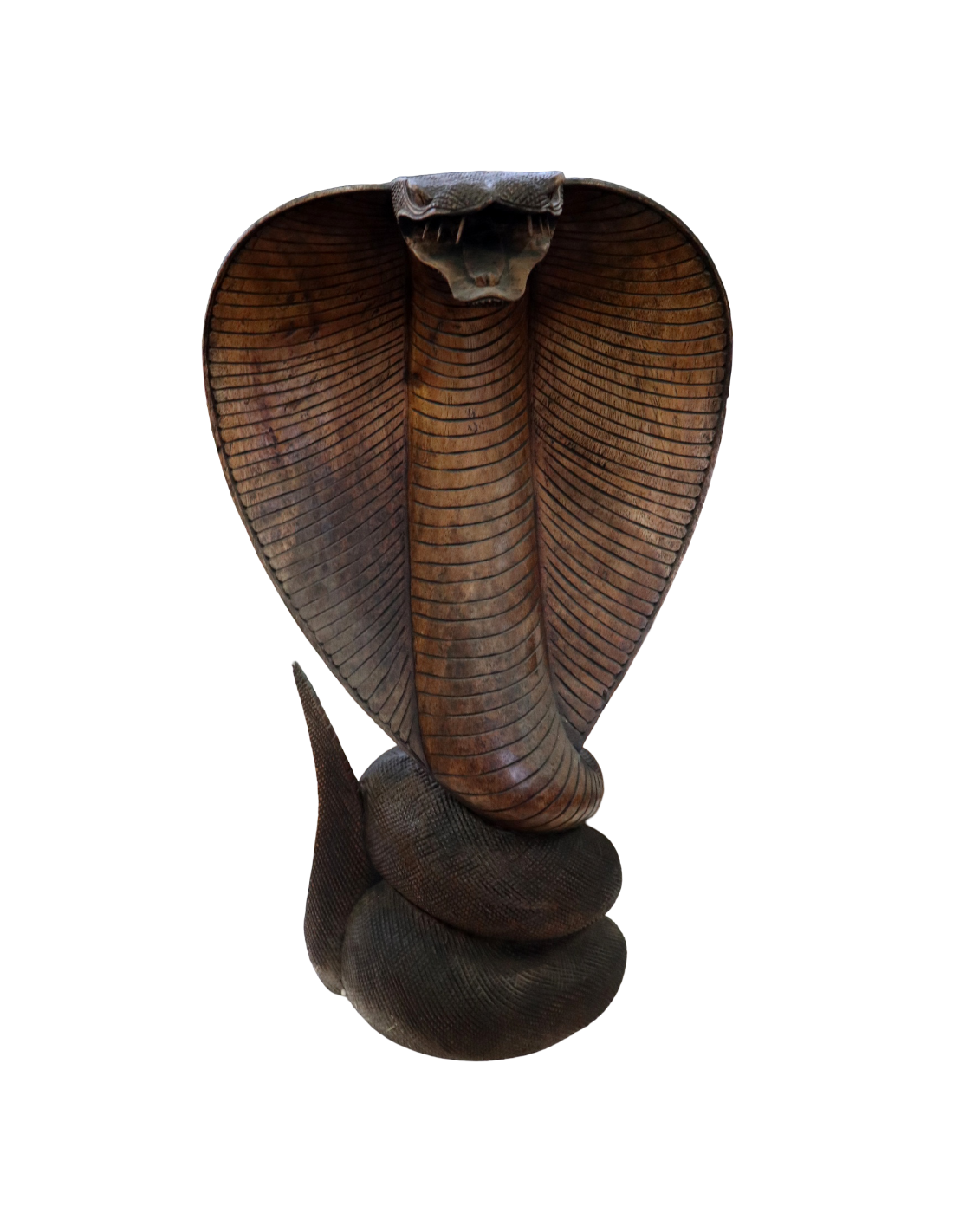 Porta nella tua casa un tocco di fascino esotico con questa maestosa statua di cobra in legno di teak, interamente realizzata a mano in Indonesia da abili artigiani.