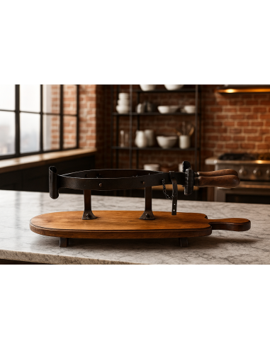 MarblechicElegante, robusto e totalmente artigianale, questo tagliaprosciutto in ferro battuto con base in legno è l’accessorio ideale per gli amanti della tradizione e della presentazione raffinata. Realizzato con cura artigianale, unisce la solidità del ferro battuto alla bellezza naturale del legno massello, offrendo un prodotto unico, resistente e perfetto sia per uso domestico che professionale.