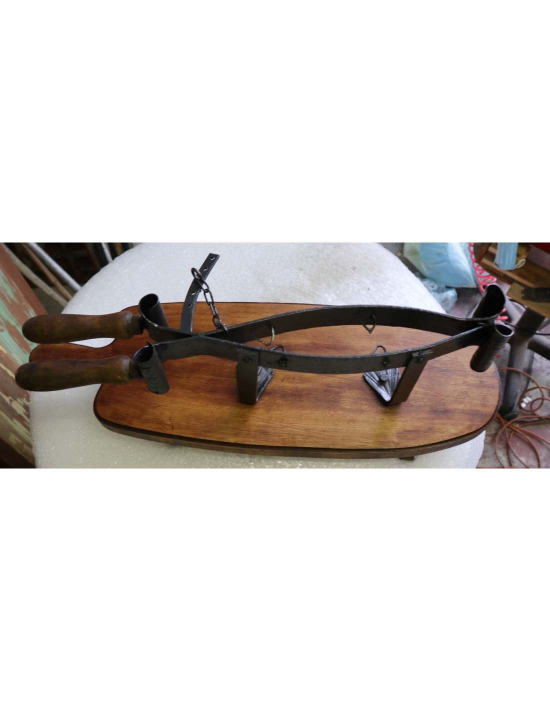 Tagliaprosciutto in Ferro Battuto con Base in Legno 69 cm – Arredo rustico vintage