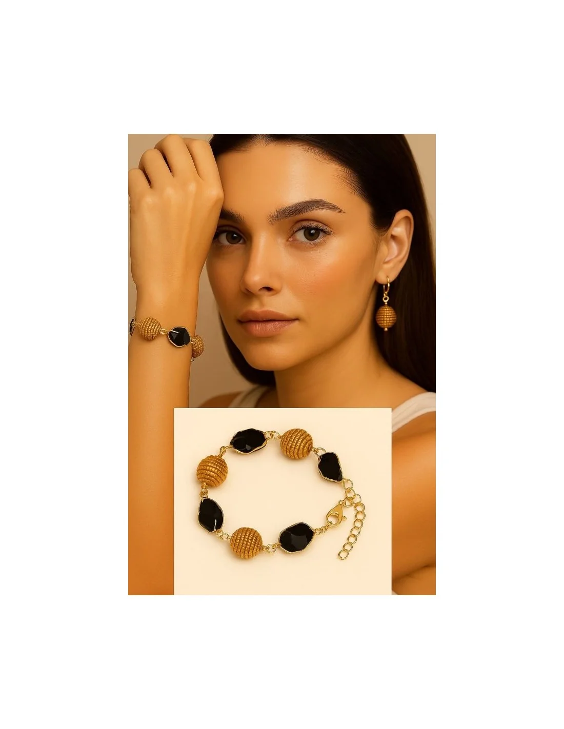 Scopri l’eleganza unica del Bracciale Aurea Tormalina e Sfere di Capim Dourado, un gioiello artigianale realizzato a mano in Brasile.