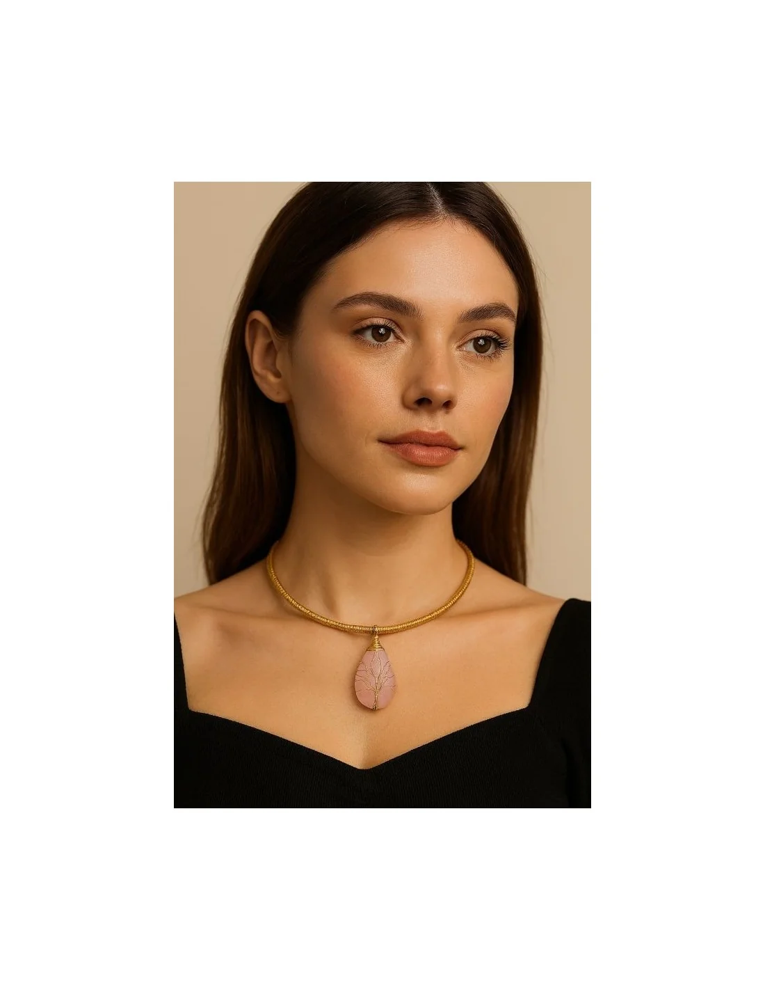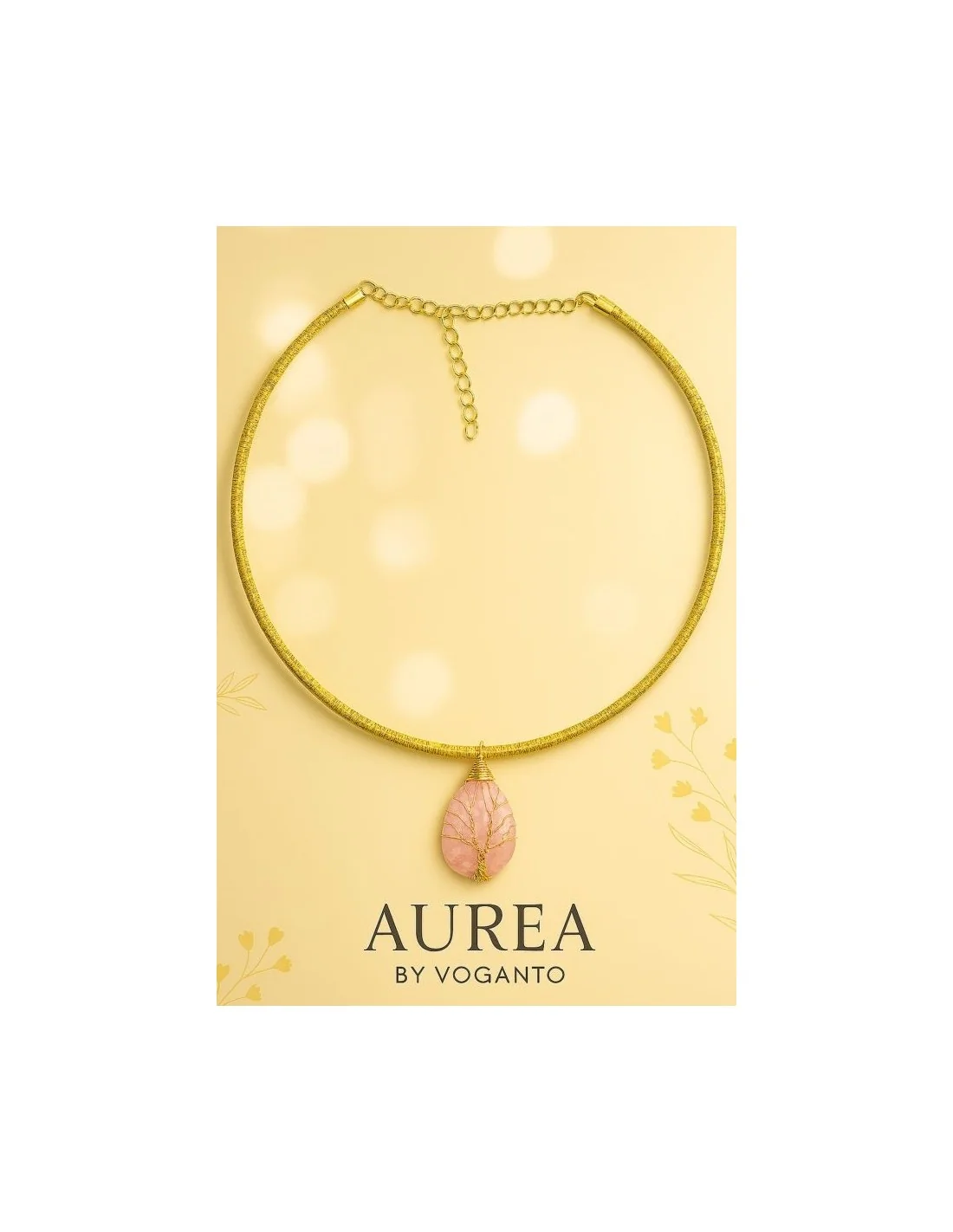 Collana AUREA – Pendente Albero della Vita in Quarzo Rosa e Capim Dourado Voganto