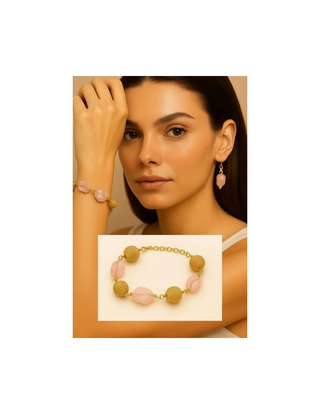 copia di bracciale AUREA – quarzo rosa e Capim Dourado Voganto sfere