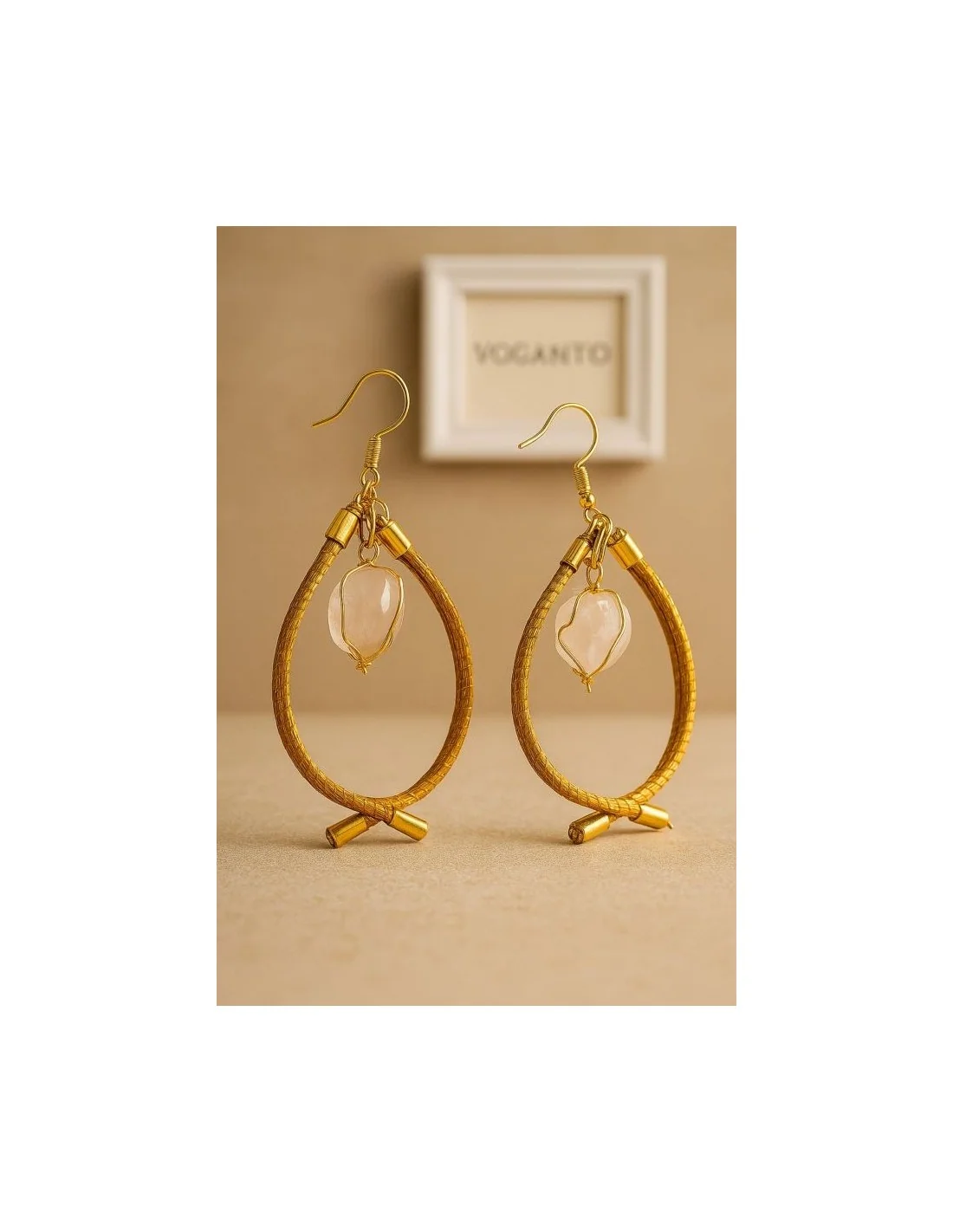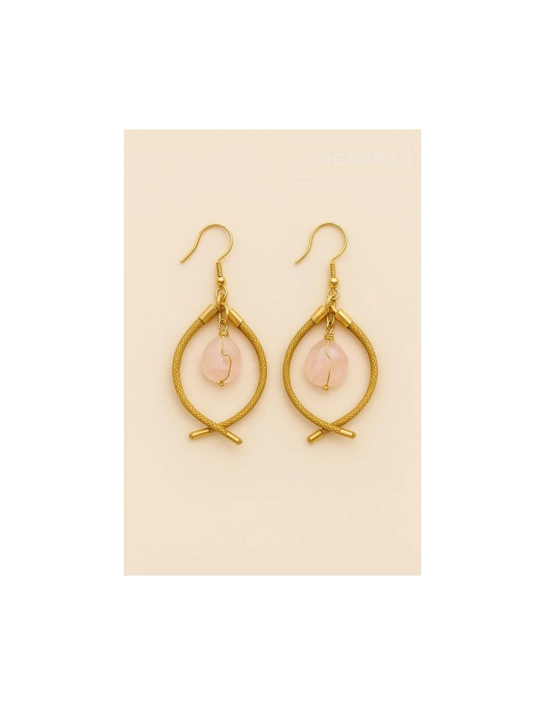 Aurea Pesciolino – Orecchini in Oro Vegetale (Capim Dourado) e Quarzo Rosa Voganto