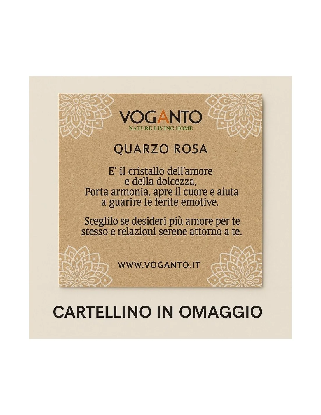 La forma a pesciolino richiama prosperità e armonia, mentre il quarzo rosa, pietra dell’amore e dell’equilibrio emotivo, dona una delicata nota luminosa. Ogni pezzo è unico, con piccole variazioni che testimoniano la lavorazione artigianale e ne rappresentano il vero valore.