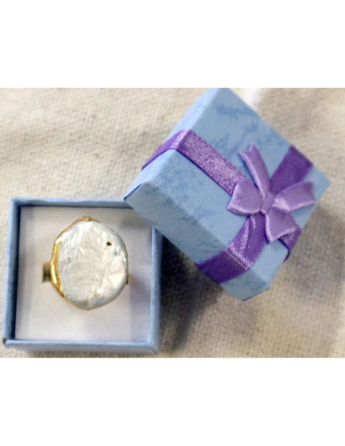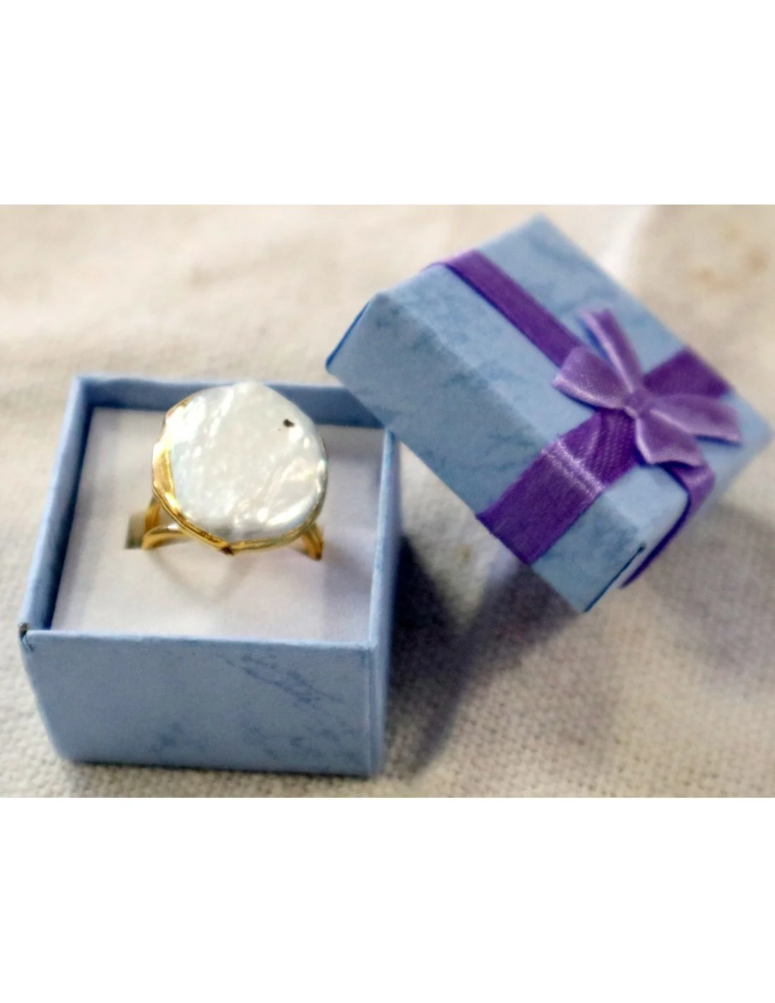 💍 Anello Regolabile in Acciaio con Bagno Galvanico in Oro e Madreperla Naturale Grezza