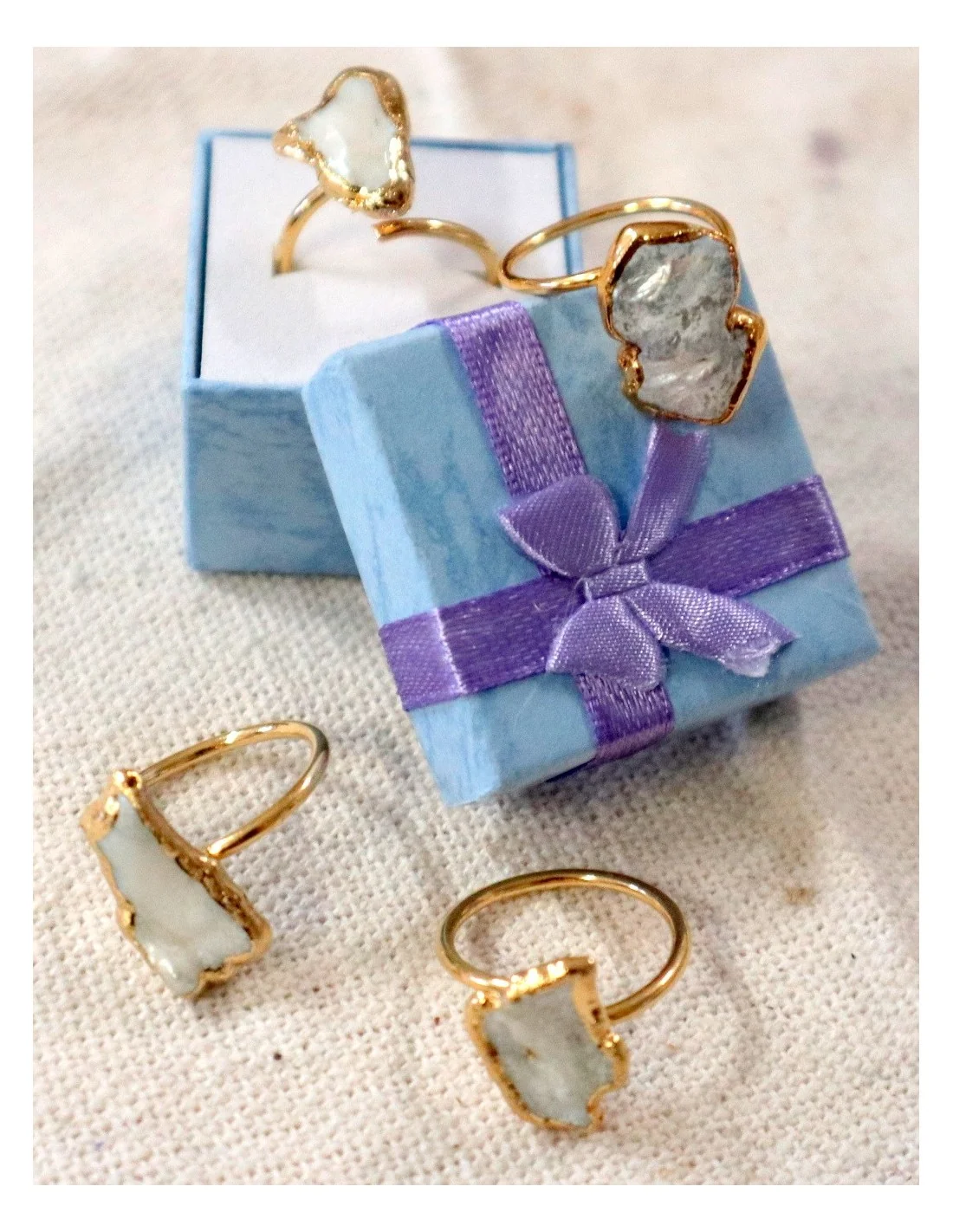 Ogni anello è unico: la madreperla, lasciata volutamente grezza, presenta forme, riflessi e venature sempre diverse, rendendo ogni pezzo irripetibile e speciale, proprio come chi lo indossa.