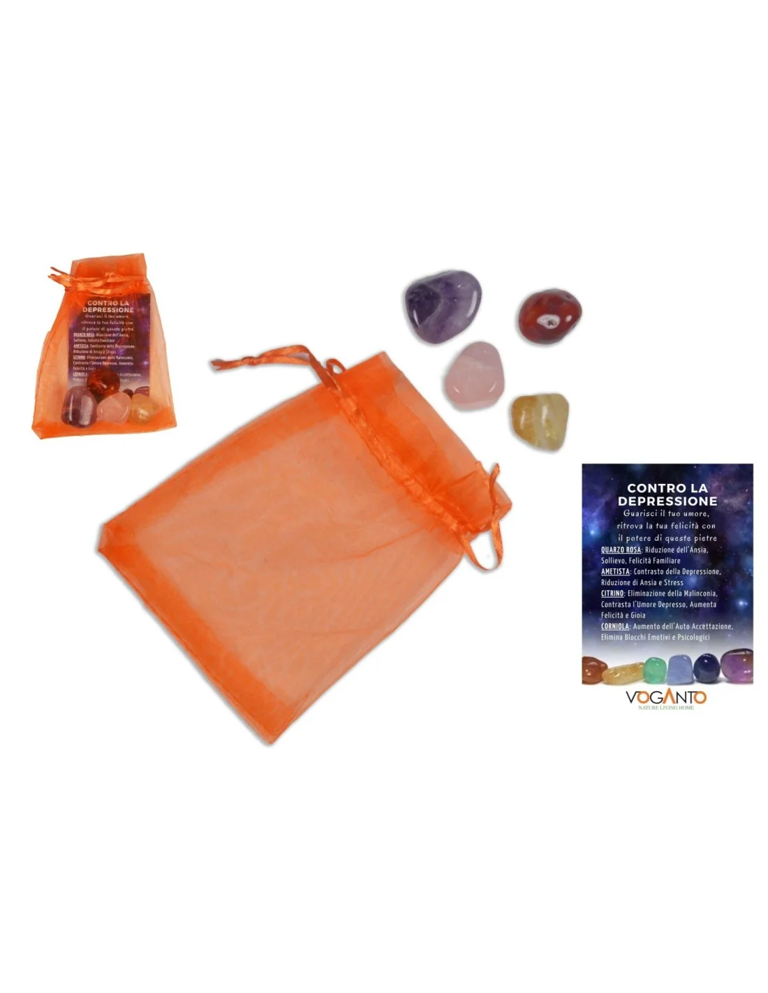 Sacchetto di Pietre “Contro la Depressione” – Quarzo Rosa, Ametista, Citrino e Corniola