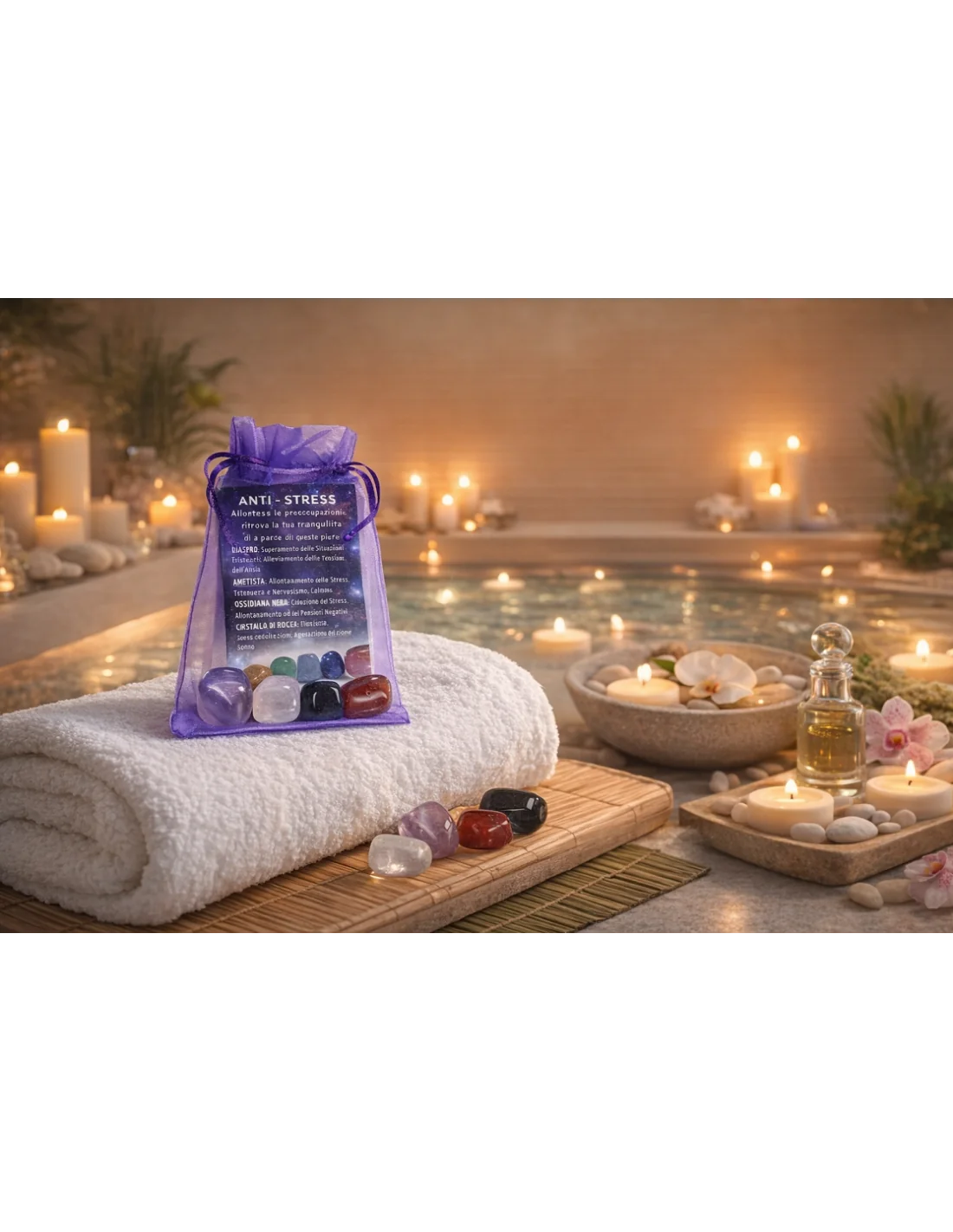 Il Sacchetto del Benessere “Anti-Stress” nasce per aiutare a sciogliere tensioni, calmare la mente e ritrovare serenità nei momenti di stress quotidiano. Al suo interno sono racchiuse quattro pietre naturali selezionate, ciascuna con un’azione specifica, ma perfettamente compatibili tra loro.