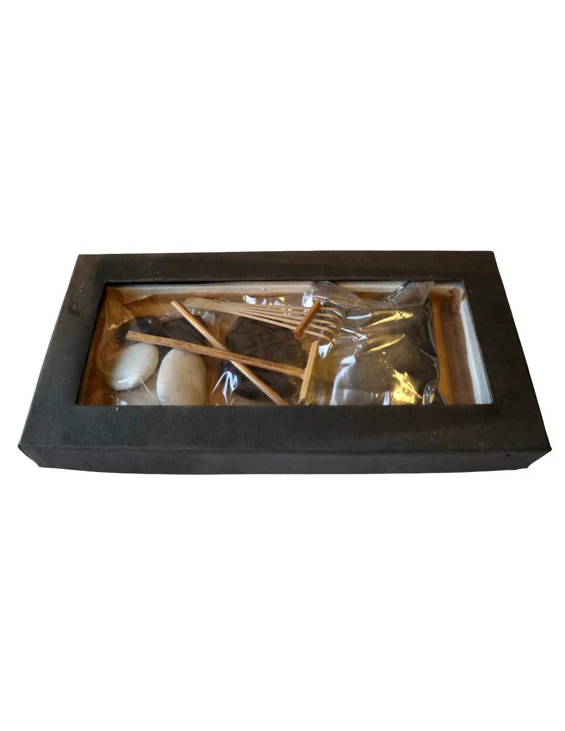 Giardino Zen da Tavolo 25x13 cm – Base in Pietra – Mini Giardino Giapponese Artigianale Indonesiano