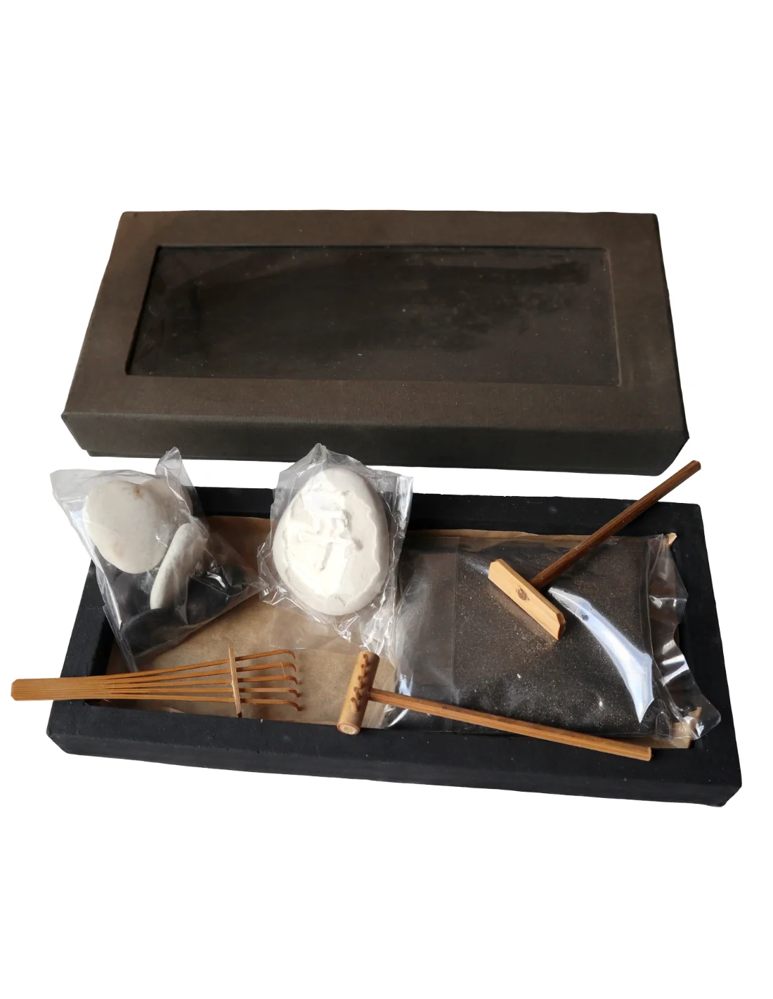 Porta armonia e bellezza nei tuoi spazi con il nostro Giardino Zen con sabbia nera naturale, un oggetto di design meditativo perfetto per spa, centri benessere, studi professionali e ambienti domestici raffinati.